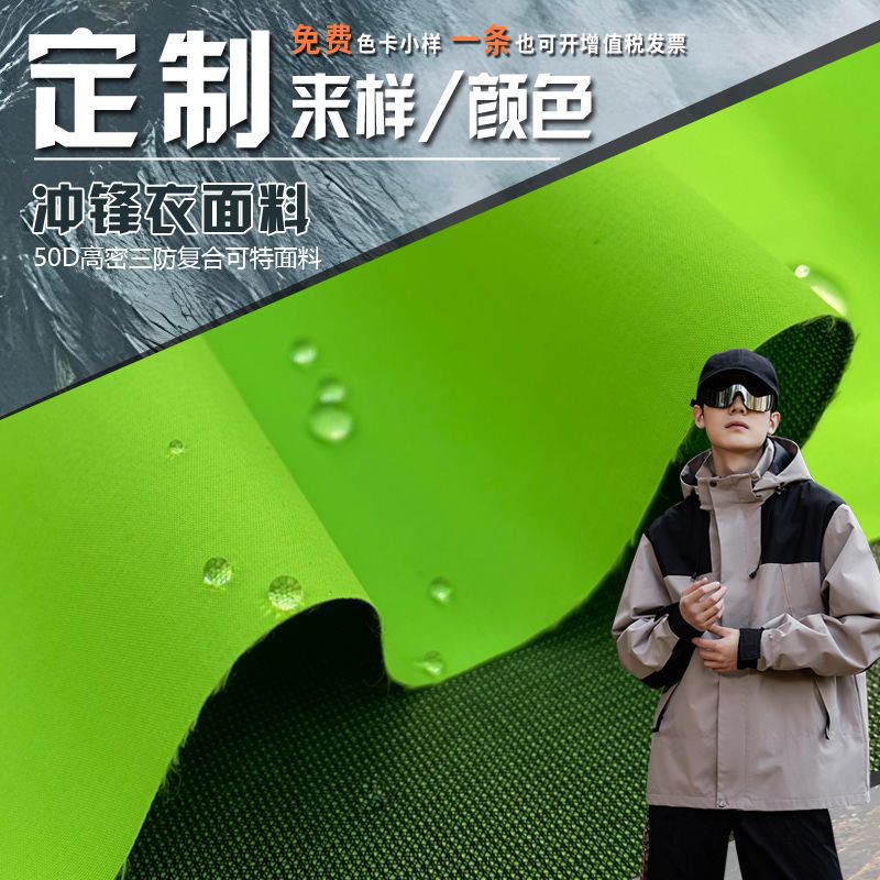 ペット突撃服生地50d三防細斜三合一特透湿防水耐摩耗性ジャケット生地