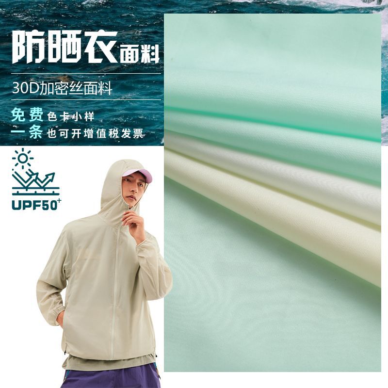 日焼け止め生地 30D ポリエステル生糸日焼け止め UPF50+ 吸湿速乾性皮膚衣類日焼け止め服ウインドブレーカー生地