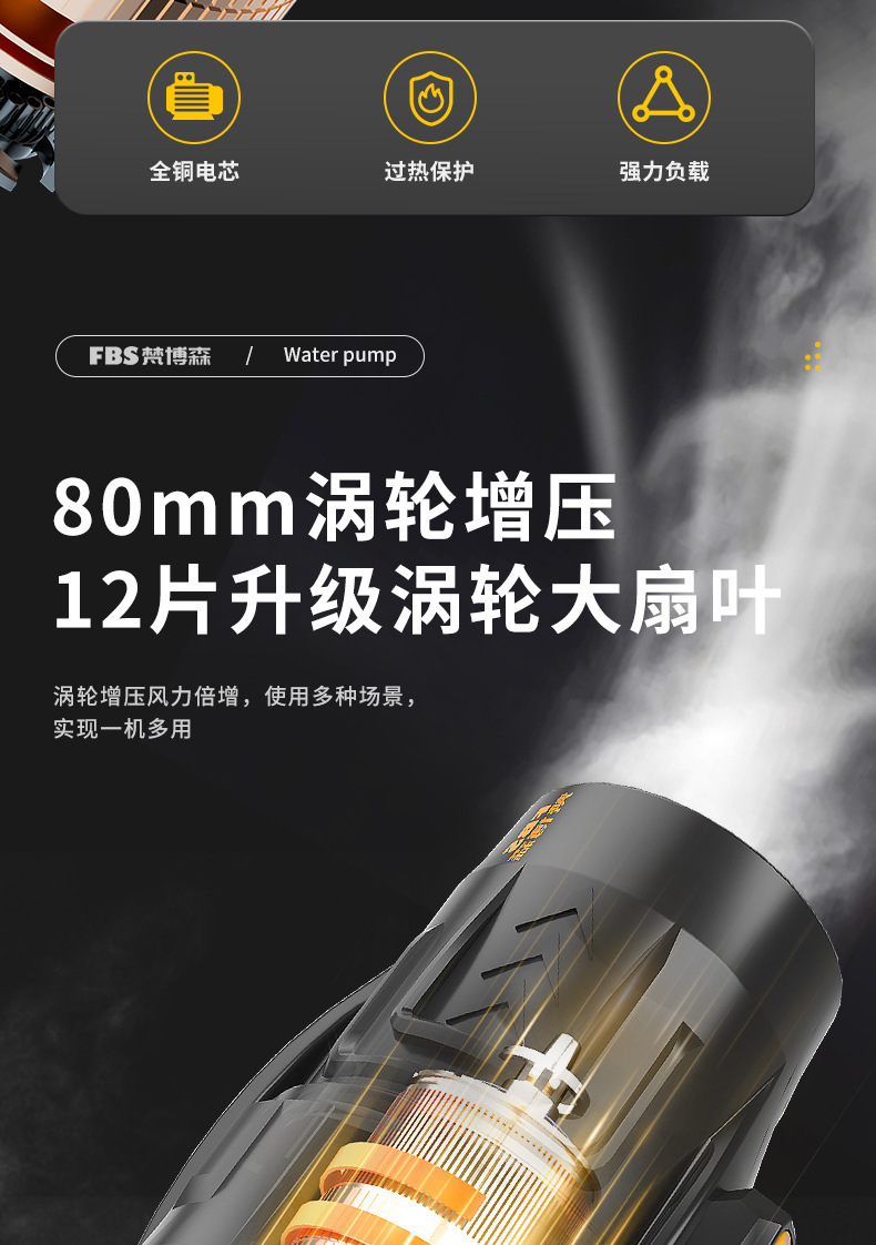 涡轮涵道风扇暴力洗车吹水除尘工业锂电池鼓风机大功率强力暴风机