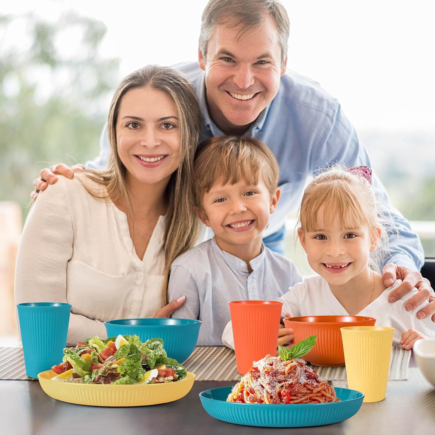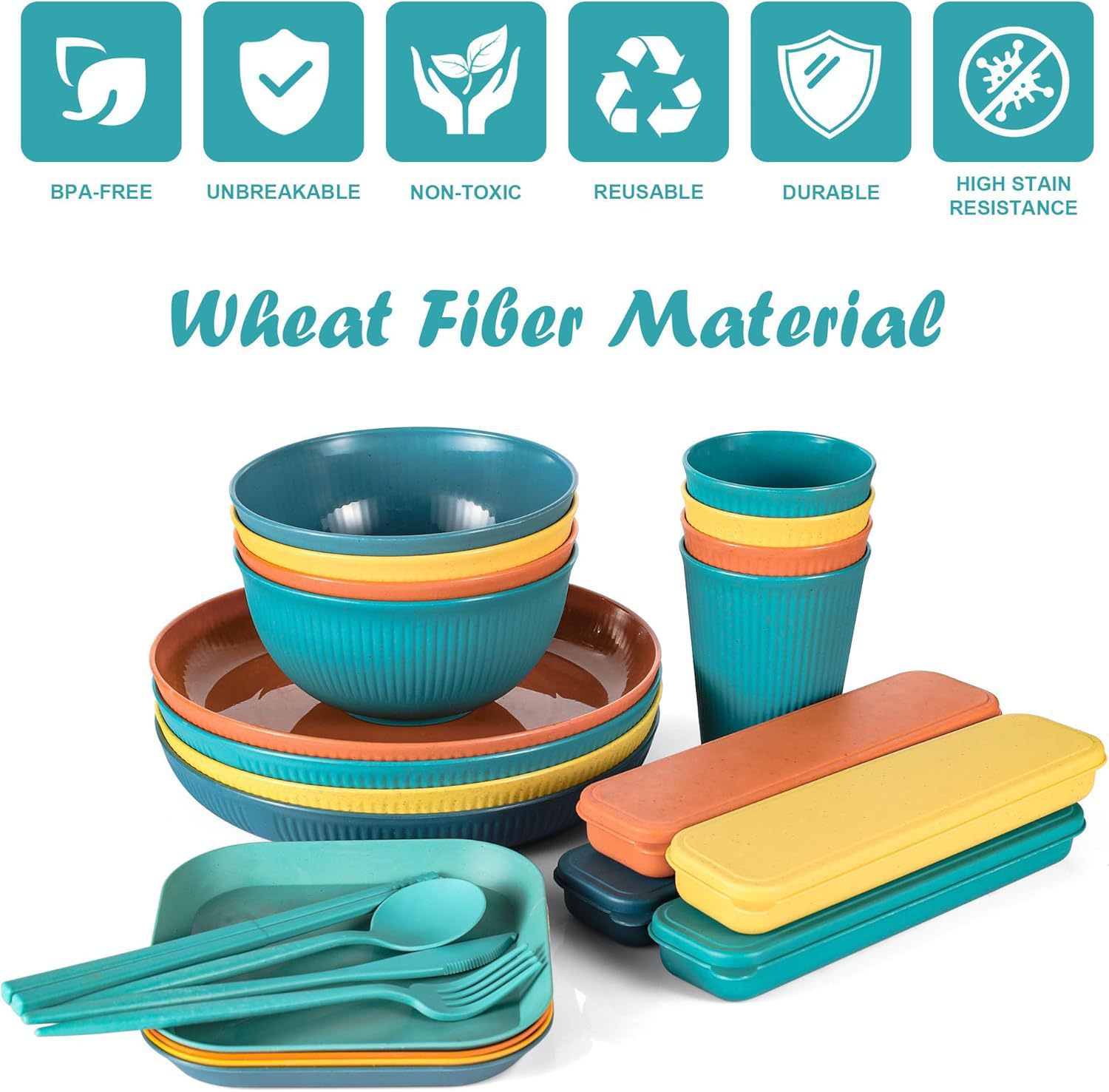 アマゾン麦わら食器皿コップ食器36pcs厚手縦紋皿茶碗ナイフフォークスプーン箸セット