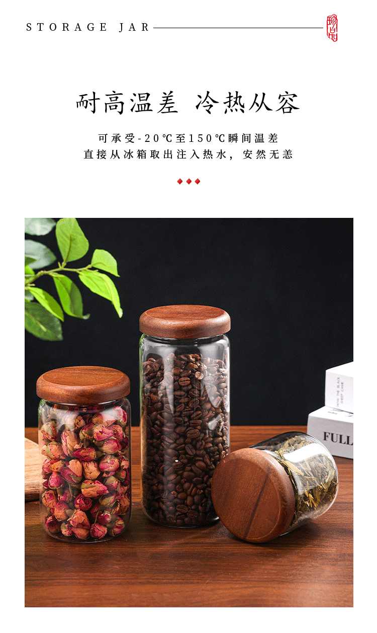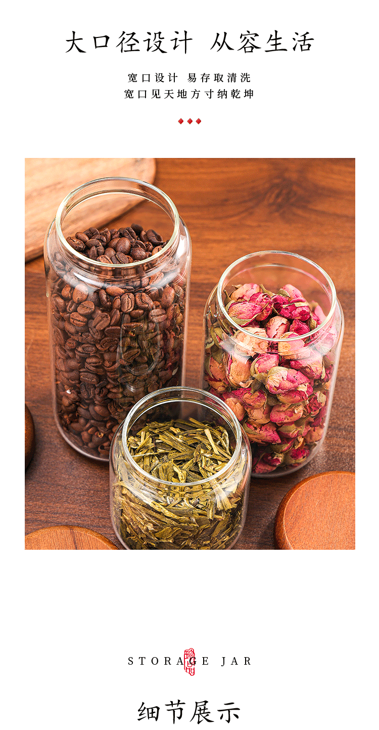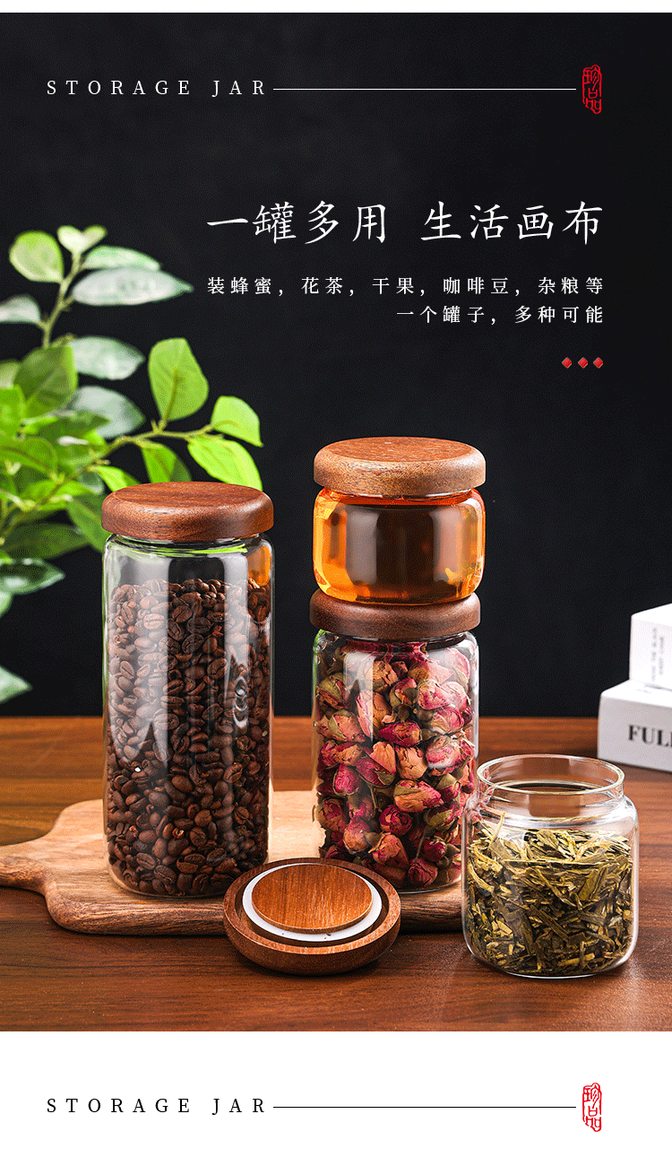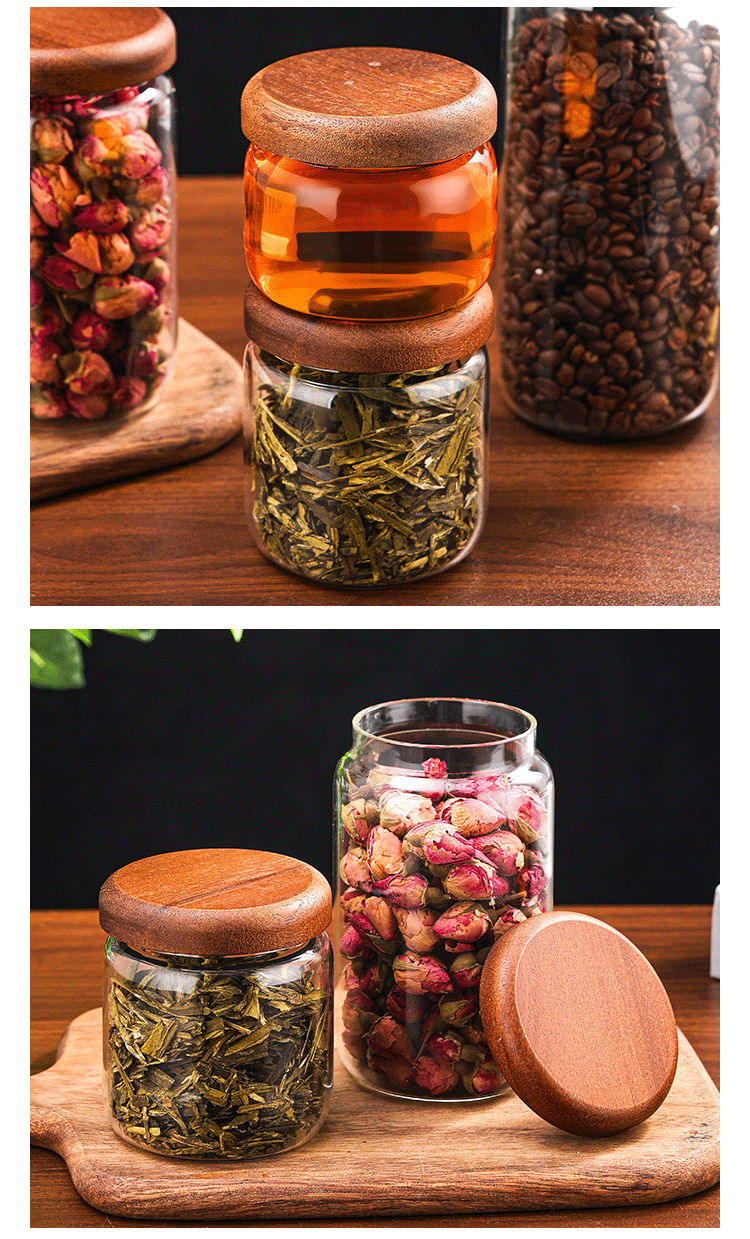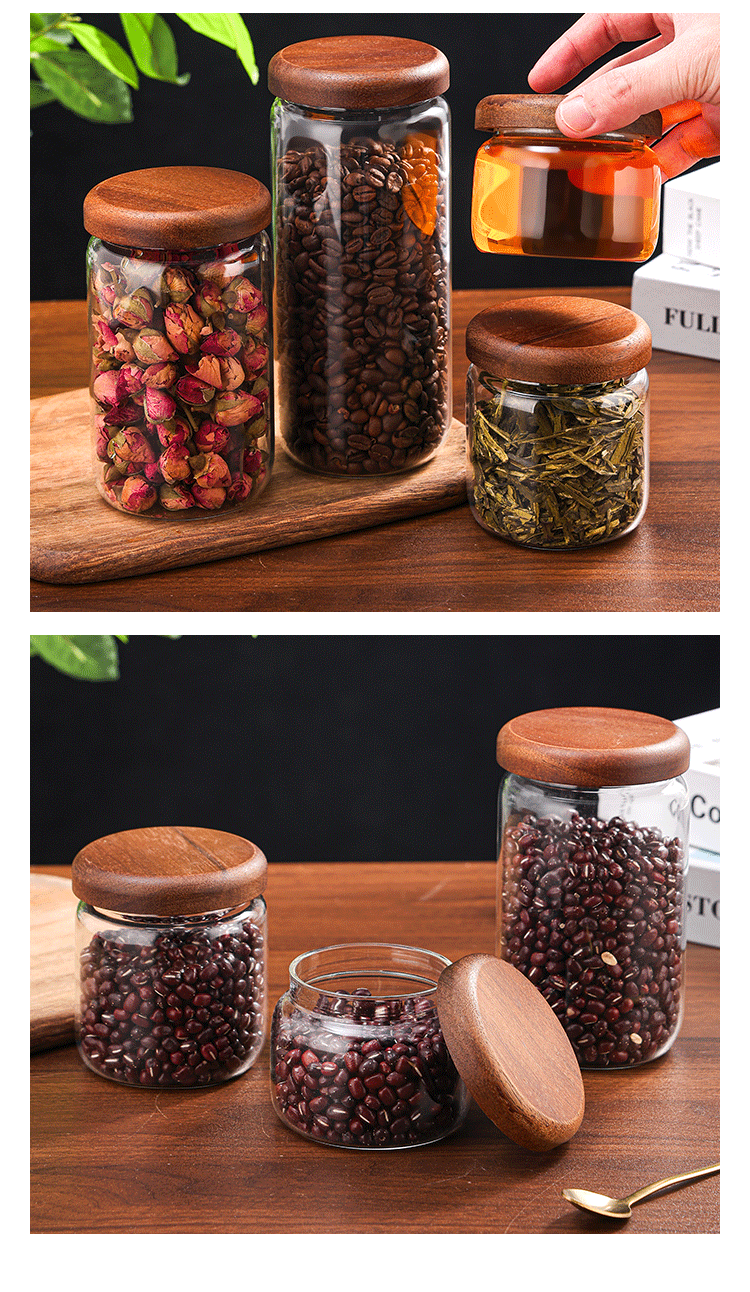 ガラス密封缶木蓋厨房通用収納缶コーヒー花茶展示収納缶