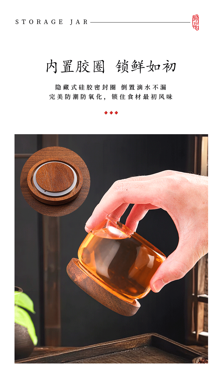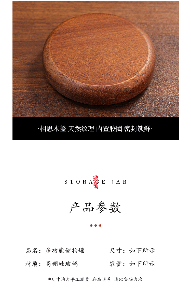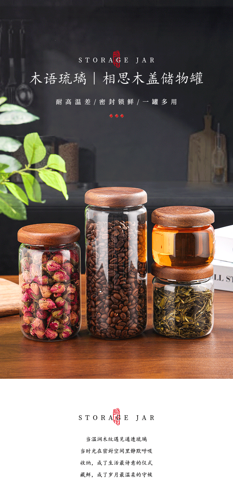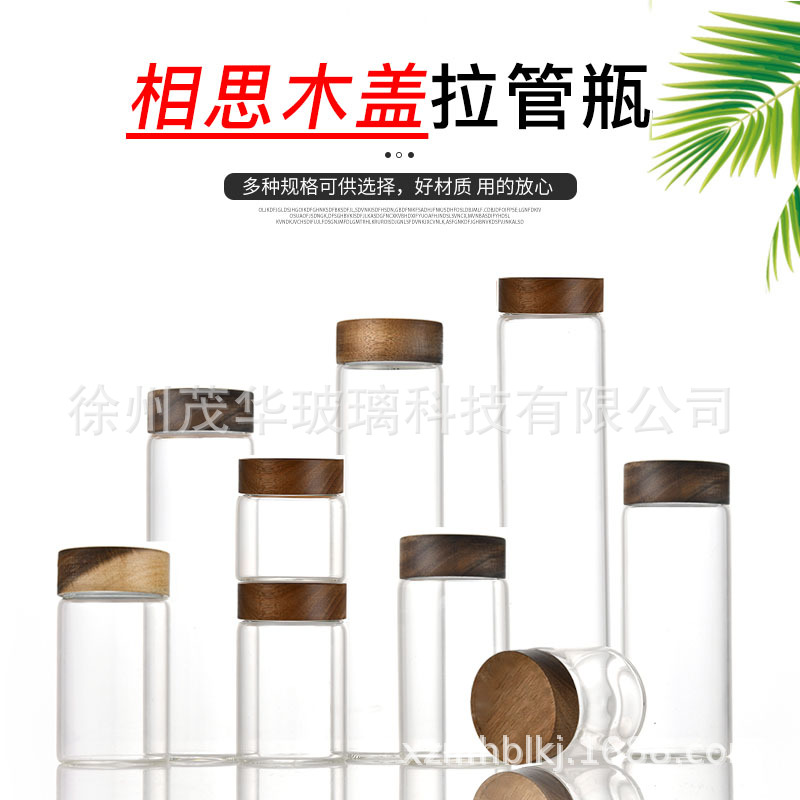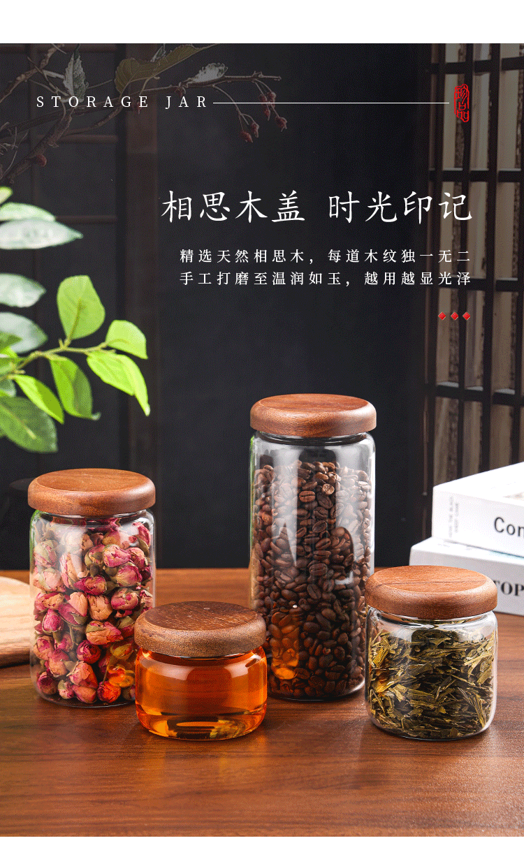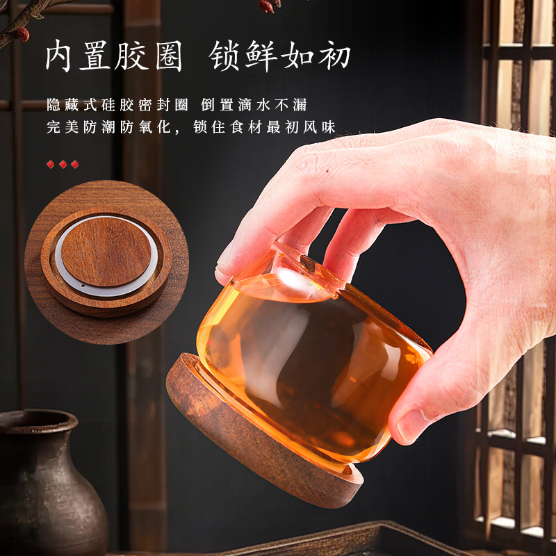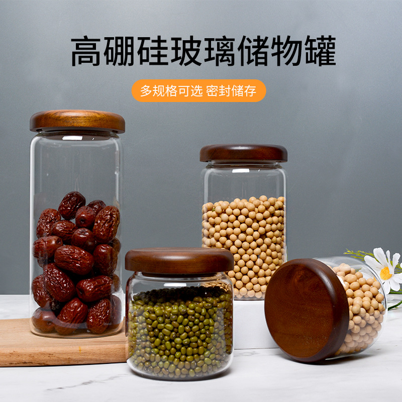 相思木螺口玻璃密封罐相思木高硼硅耐热玻璃储物罐 储存罐糖果罐
