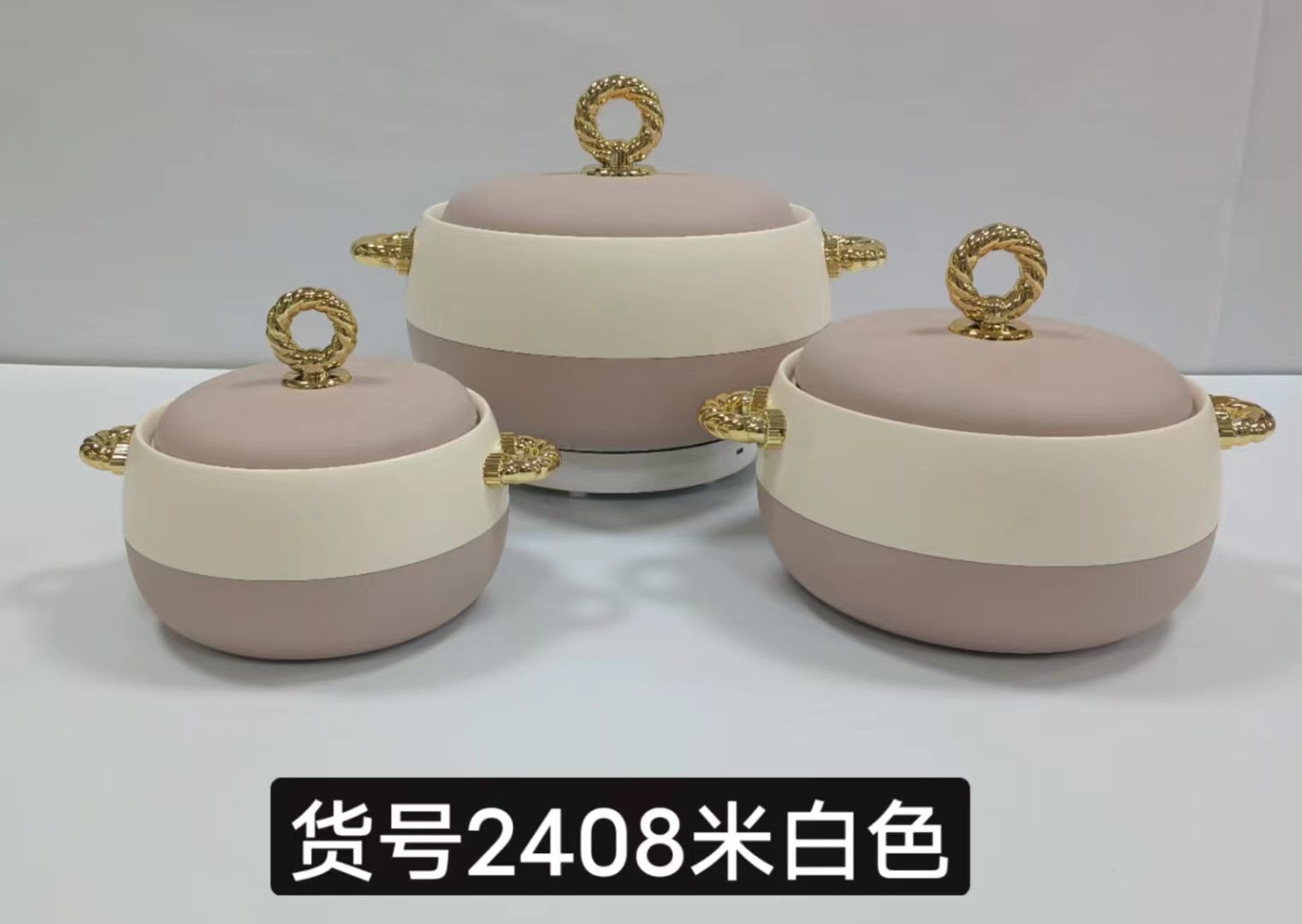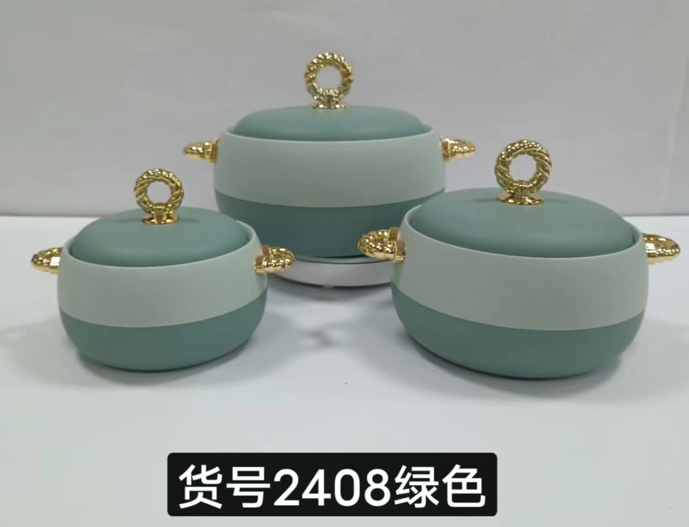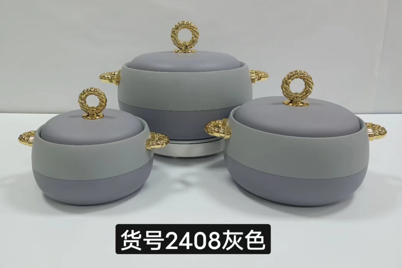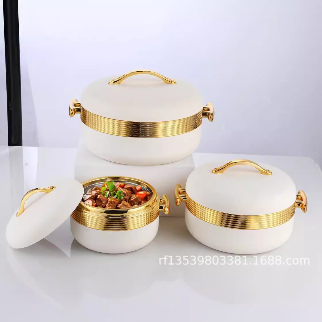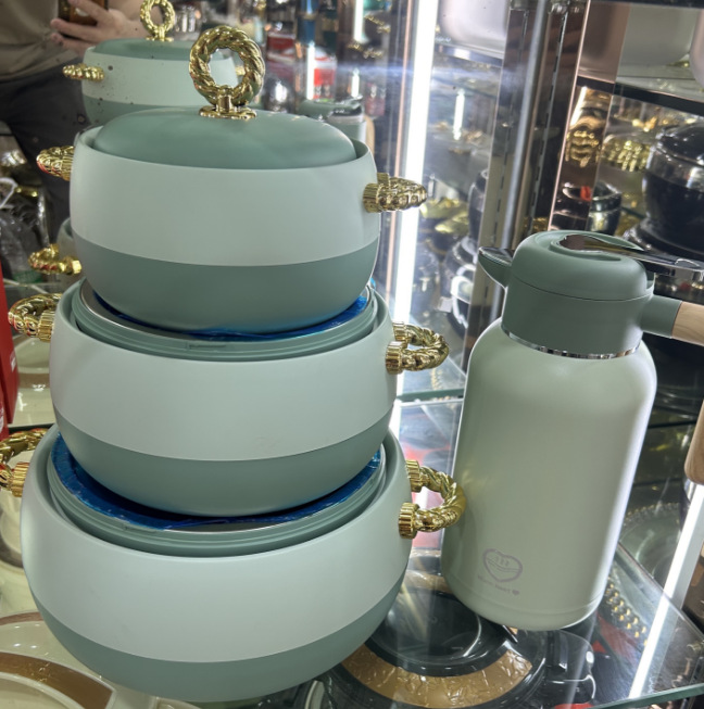 フードウォーマー熱い販売 3 個外国貿易断熱ボックス 1L-2L-3.5L /SET ゴールドハンドルアート。 2408