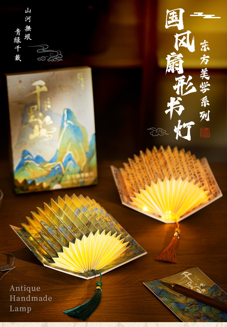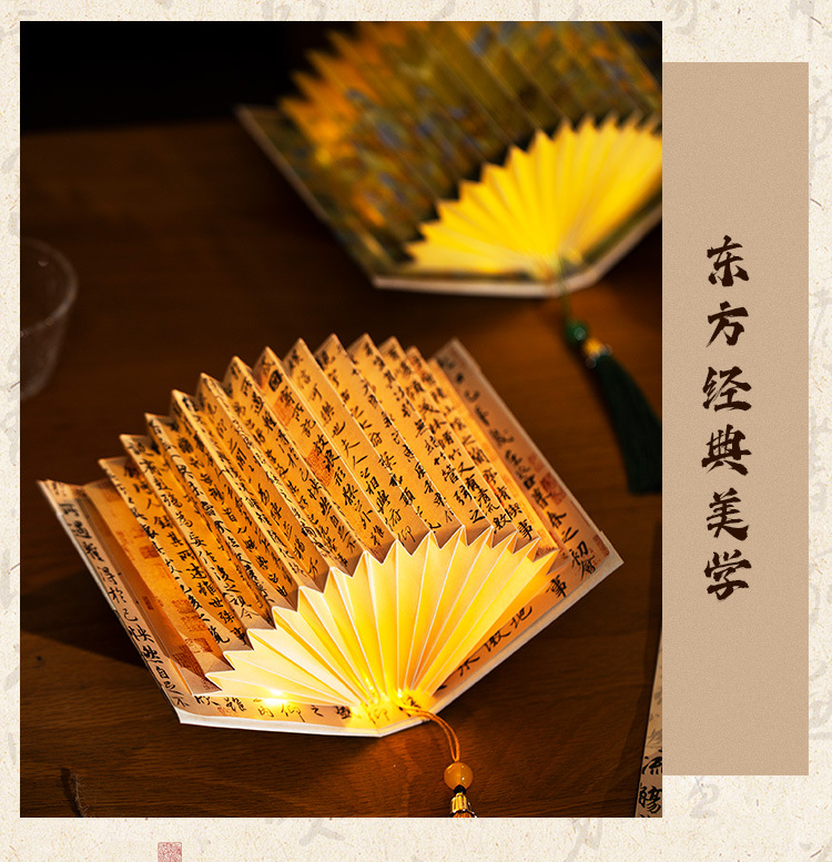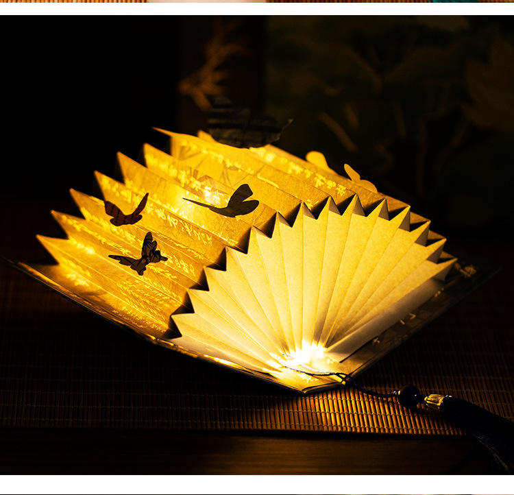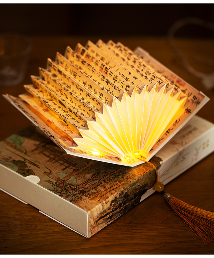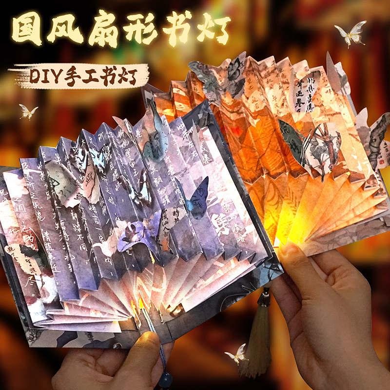 全国トレンドレトロスタイル書道扇形紙ランプ DIY 手作り折りたたみギフト詩風景画立体ブックランプ卸売