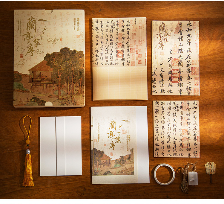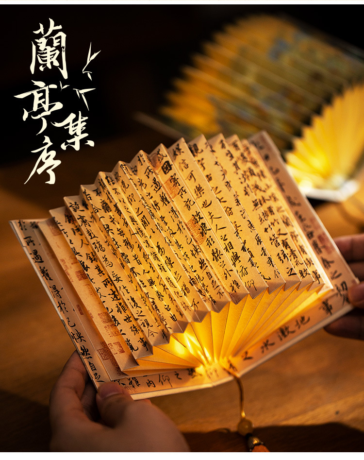 DIY蘭亭集序国風扇形書灯創意古風書道手作業折りたたみ夜灯置物文創プレゼント1