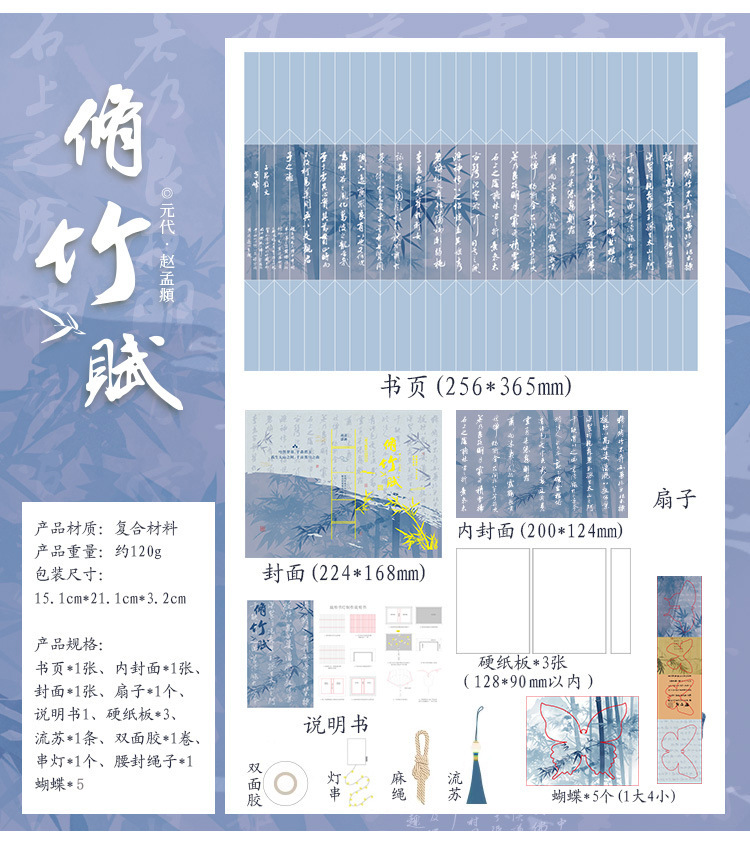 DIY蘭亭集序国風扇形書灯古風書道児童手作業折り畳み小夜灯文創プレゼント