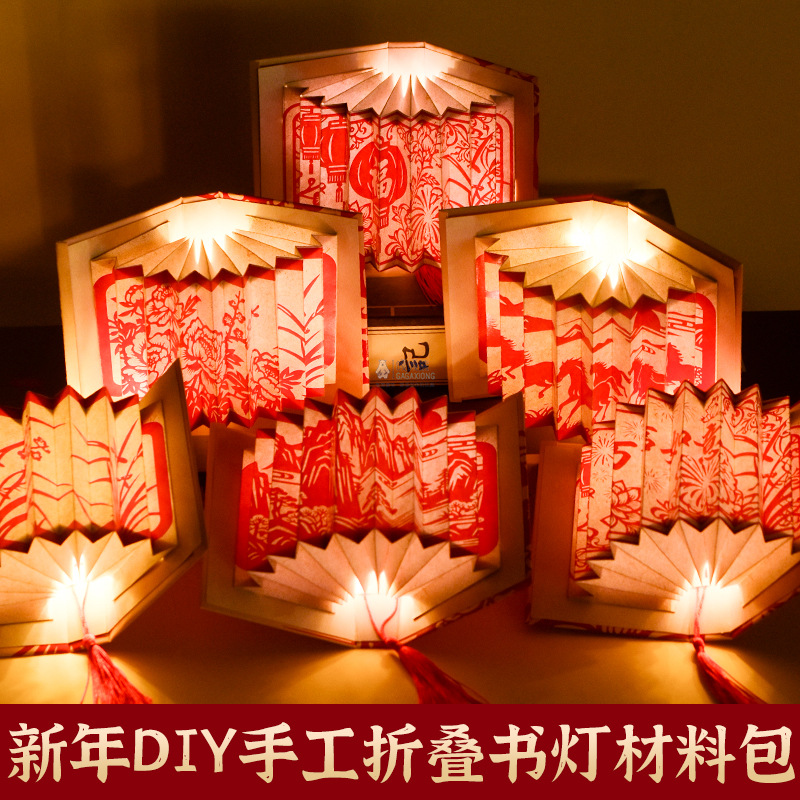 书灯折叠小夜灯制作diy材料包书桌灯书本灯翻书灯国风祝福文字灯