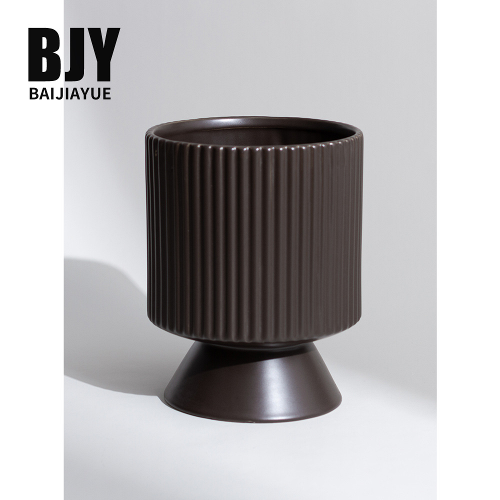 北欧風ストライプセラミック植木鉢 モダンシンプル モランディデザイナー 緑植物用植木鉢 卓上ホームデコレーション 手作り