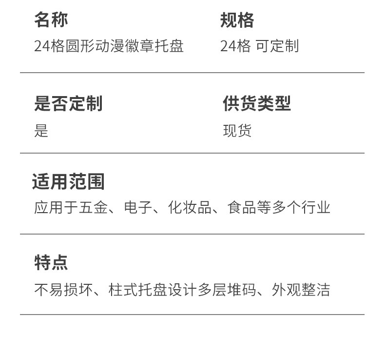 24グリッド丸型バッジバーチャルト、直径59、ブリスター包装、電子部品、プラスチックブリスタートレイ、物流回転