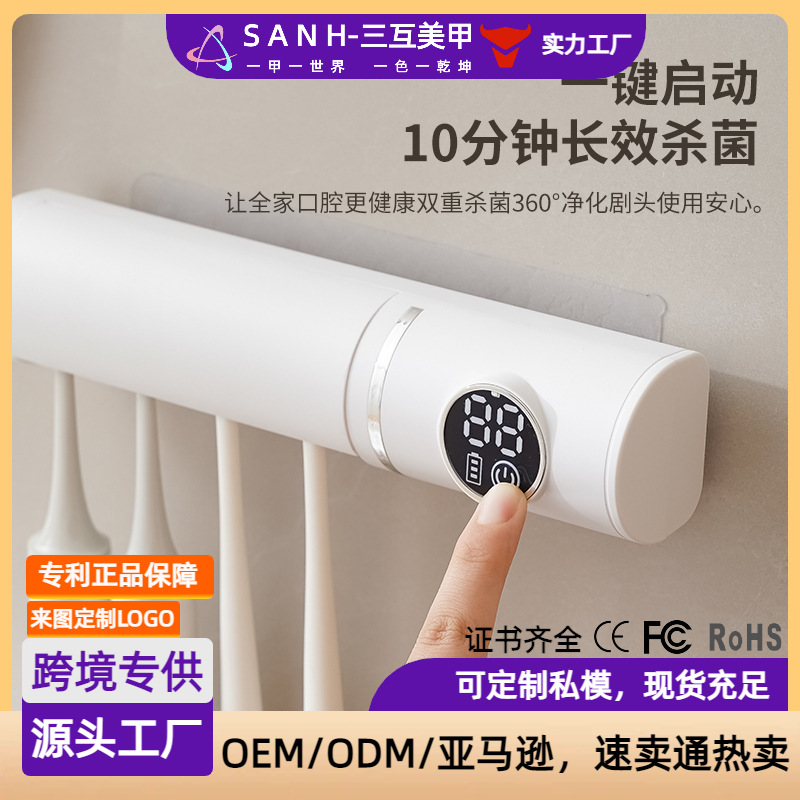 智能牙刷消毒器紫外线杀菌家用usb充电数显牙刷置物架牙刷收纳盒