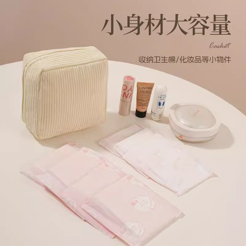 シンプル多機能衛生収納バッグ小方包ins日系甘いコーデュロイ角型大容量衛生バッグ