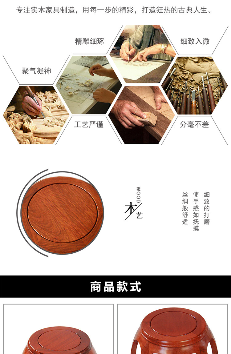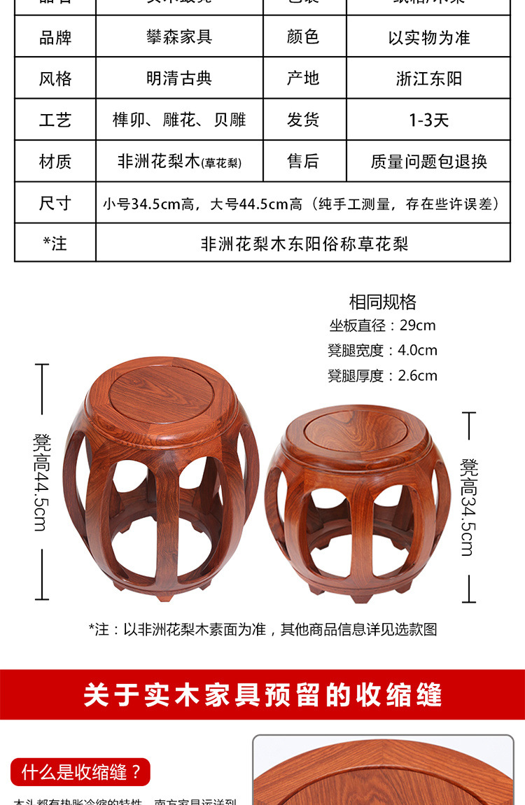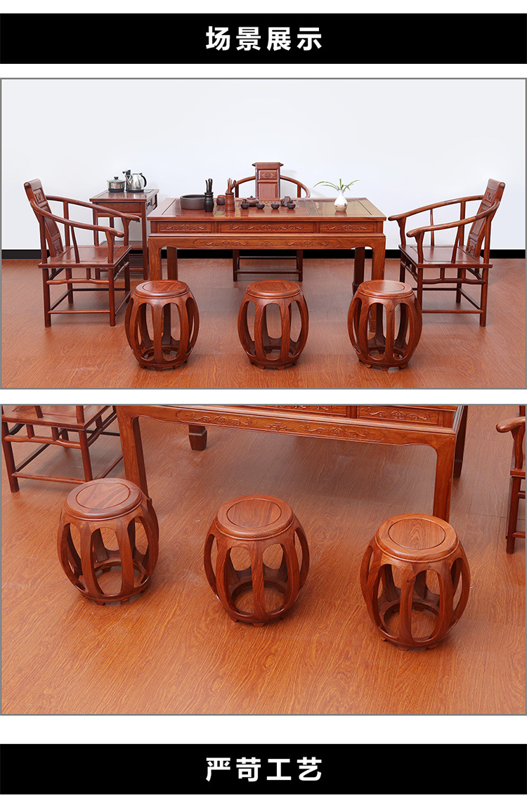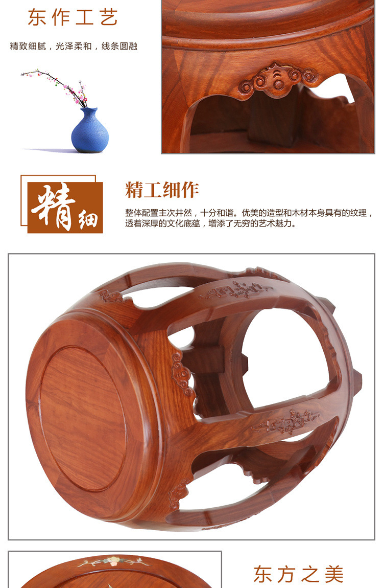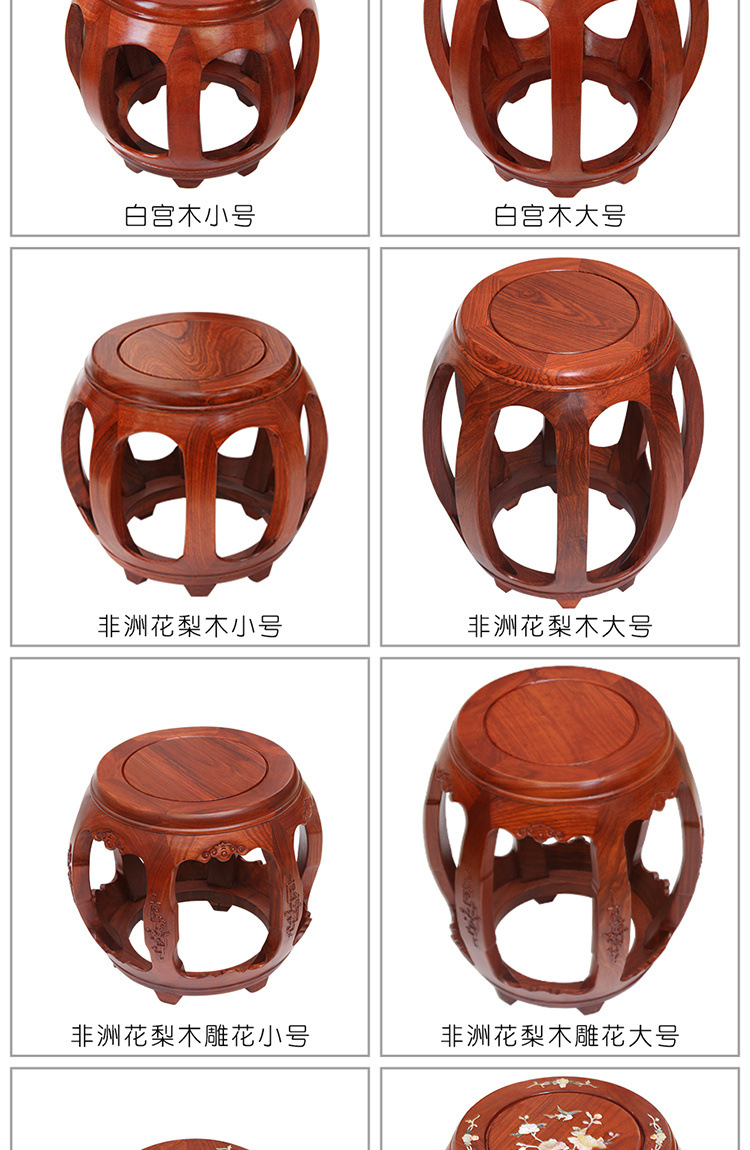 鼓凳花梨木圆凳实木换鞋凳中式小矮凳仿古印花古筝凳琴凳贸易工厂