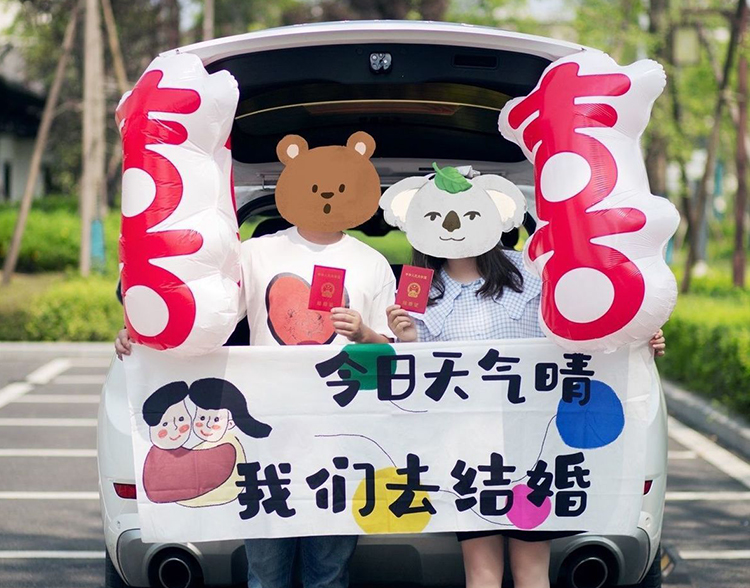 Wenpai 結婚証明書写真小道具屋外新郎新婦ダブルハッピーバルーンバナーフラッグ新鮮な結婚式の部屋