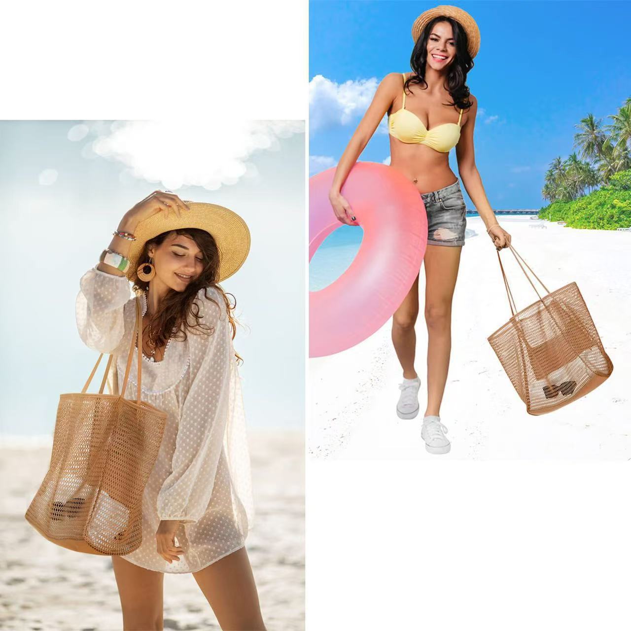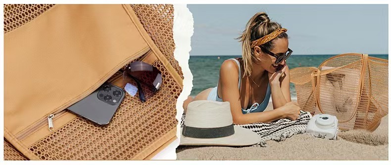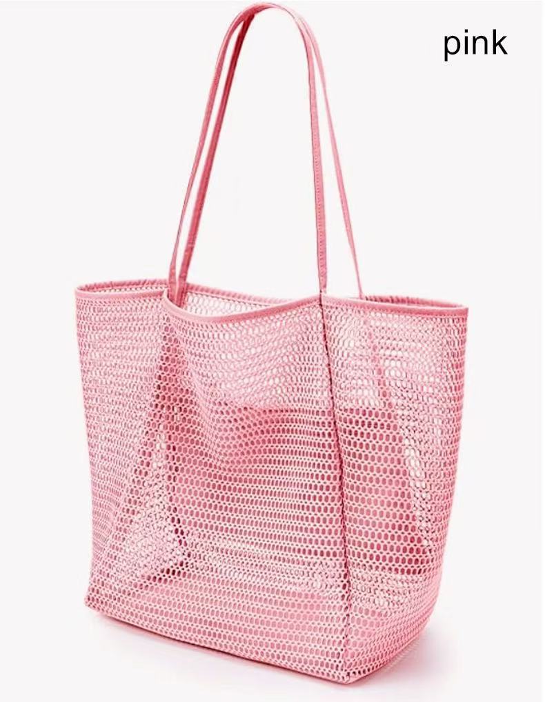 跨境新款折叠沙滩包网眼手提包,女式单肩包购物袋夏季户外旅行包