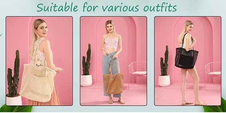 クロスボーダー折りたたみビーチバッグメッシュメッシュハンドバッグレディースショルダーバッグ夏アウトドア旅行必須観光バッグ