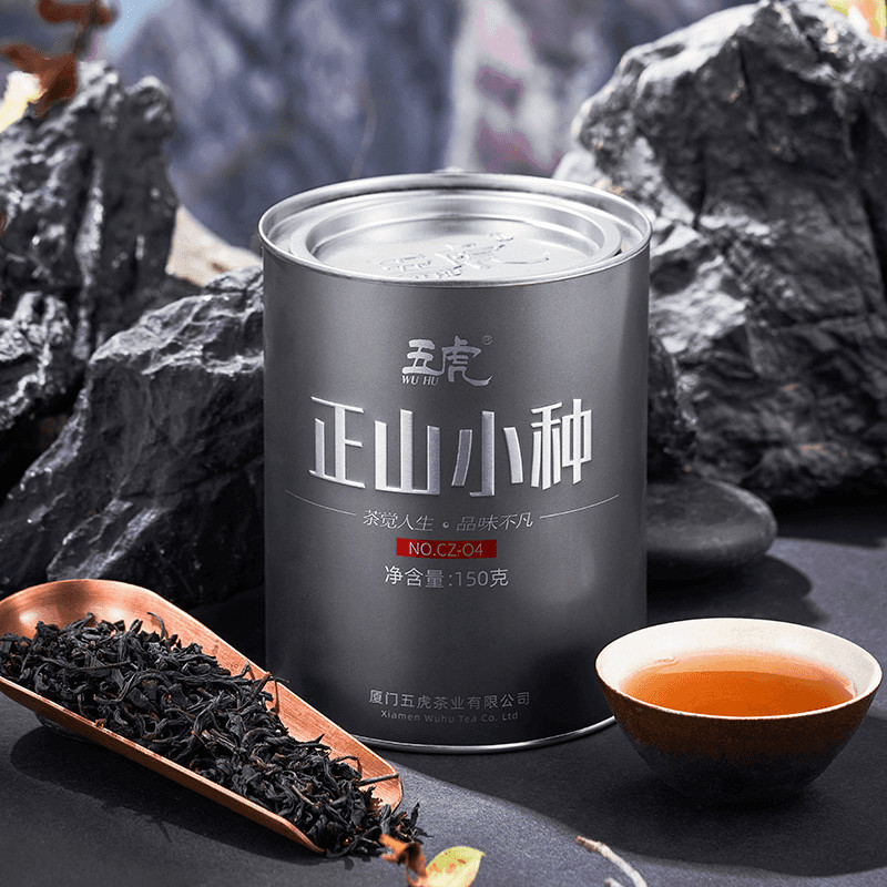 五虎ラプサンスーチョン紅茶武夷紅茶強い風味の特別なラプサンスーチョン茶卸売缶詰ギフトボックス