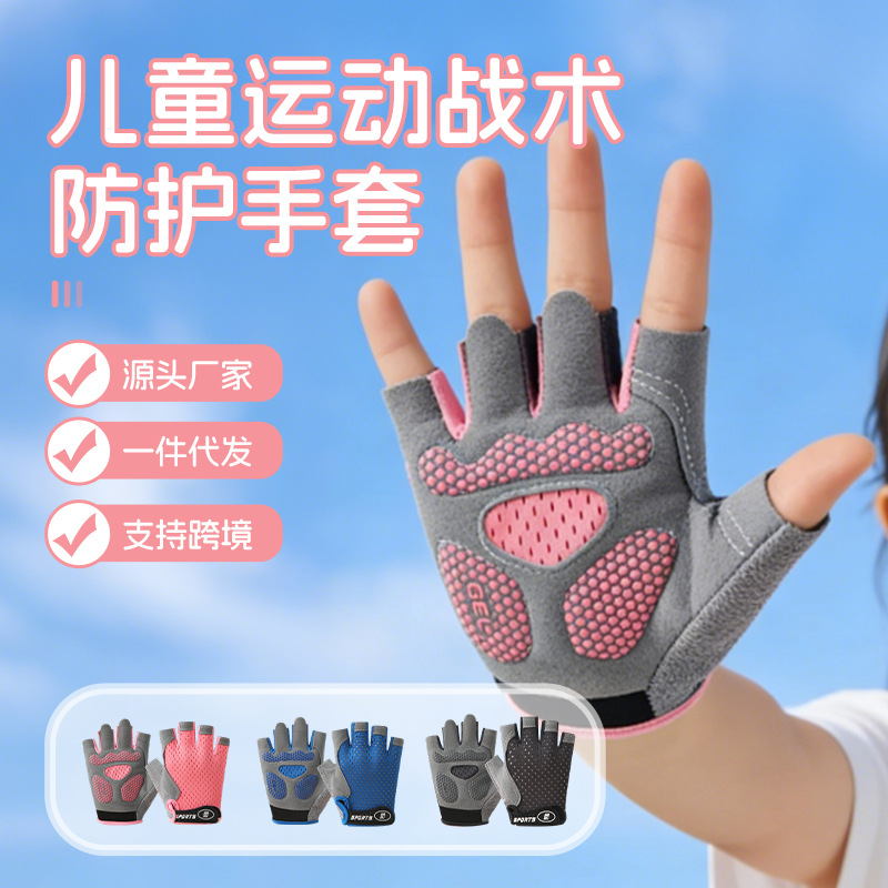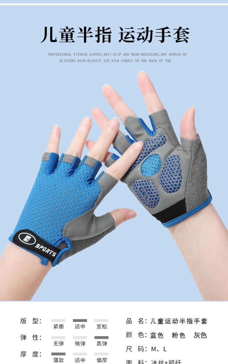 儿童运动手套户外透气半指防滑平衡车攀岩骑自行车滑板单杠男女宝