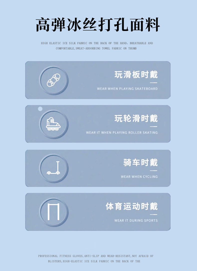 儿童半指运动手套骑行防滑透气轮滑单杠攀岩耐磨防护手套