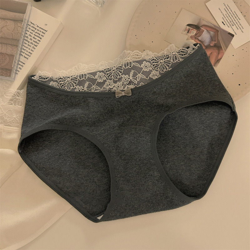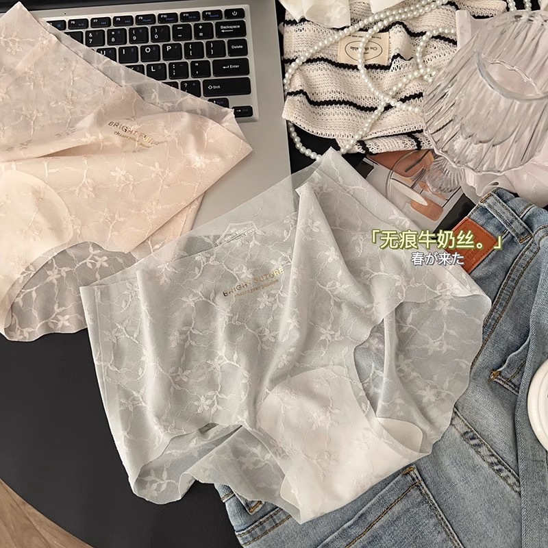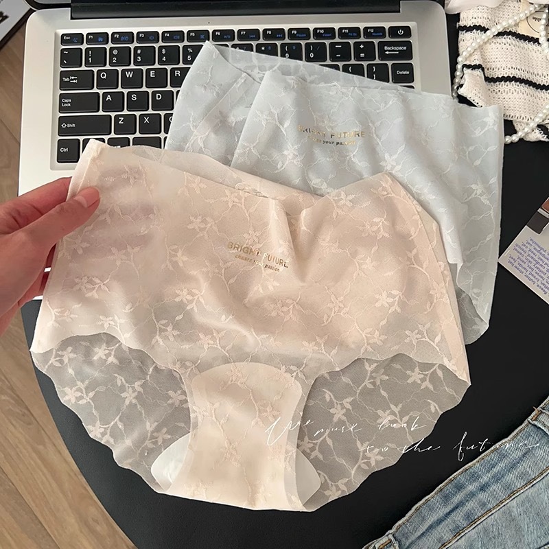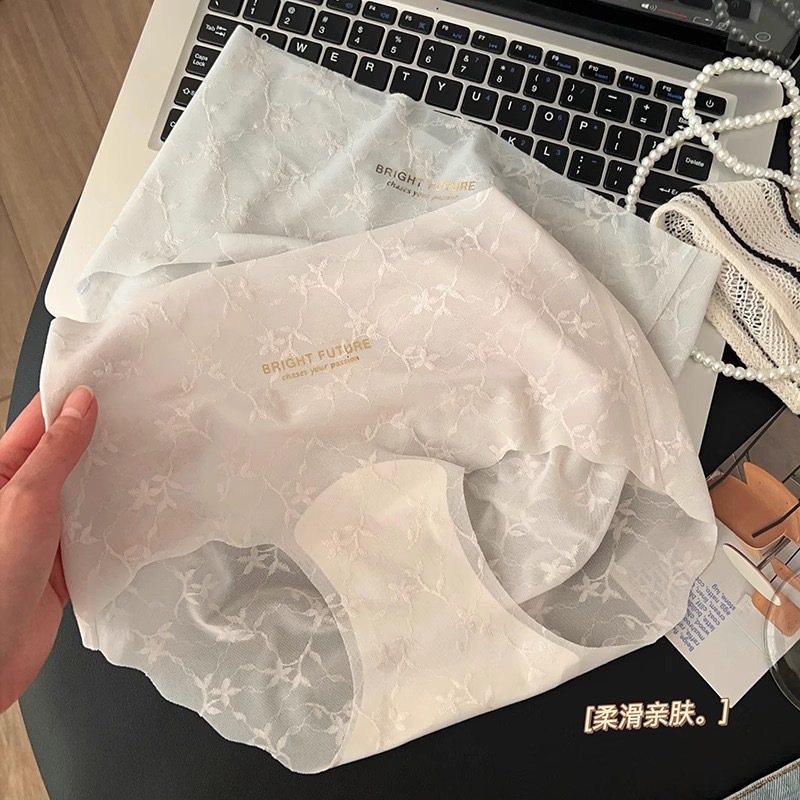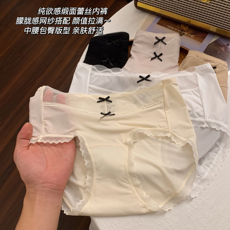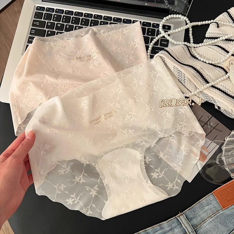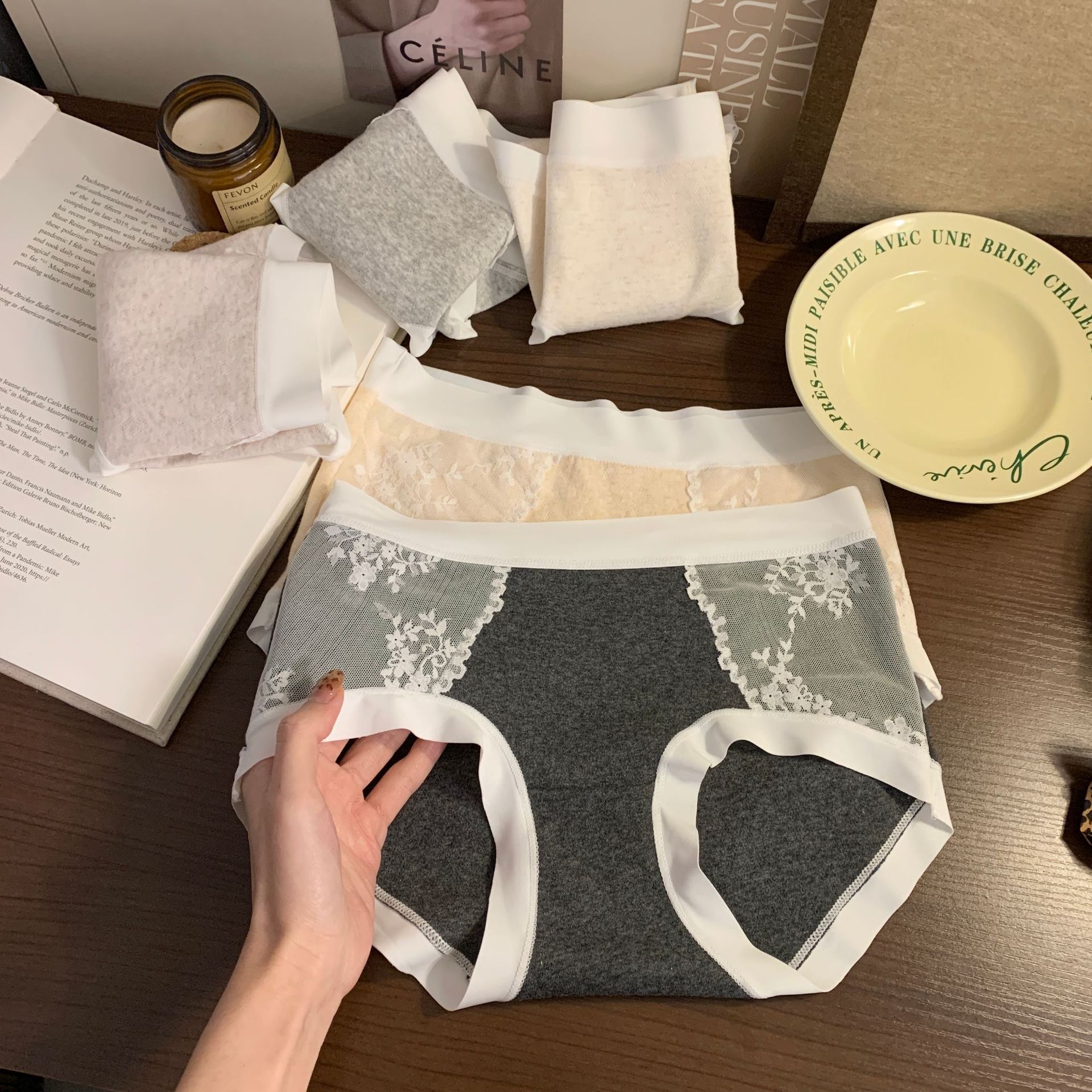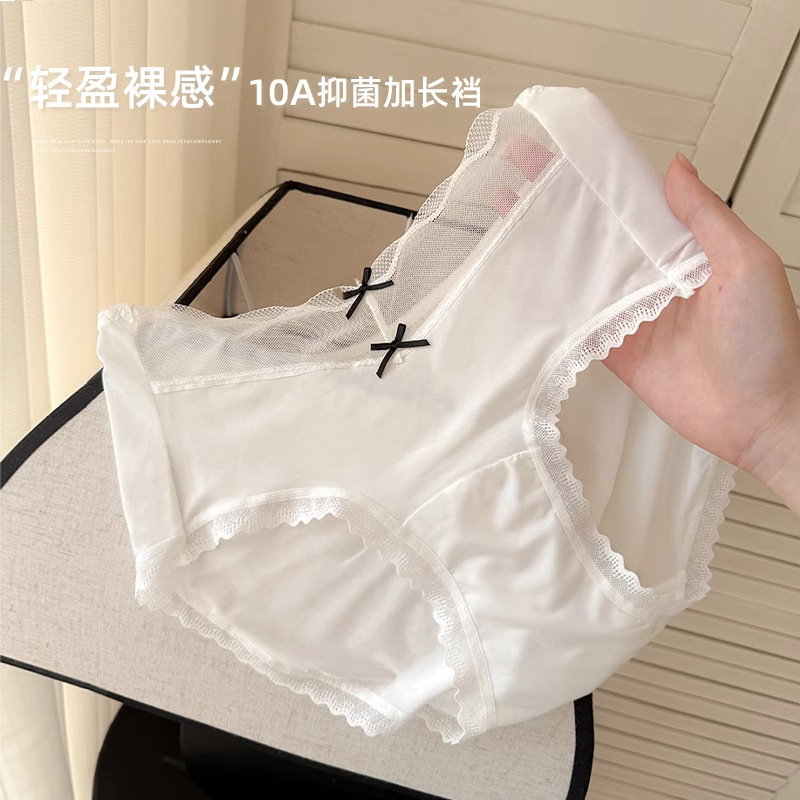法式蕾丝冰丝内裤女中腰10A全棉抑菌加长裆女生大码纯欲风批发