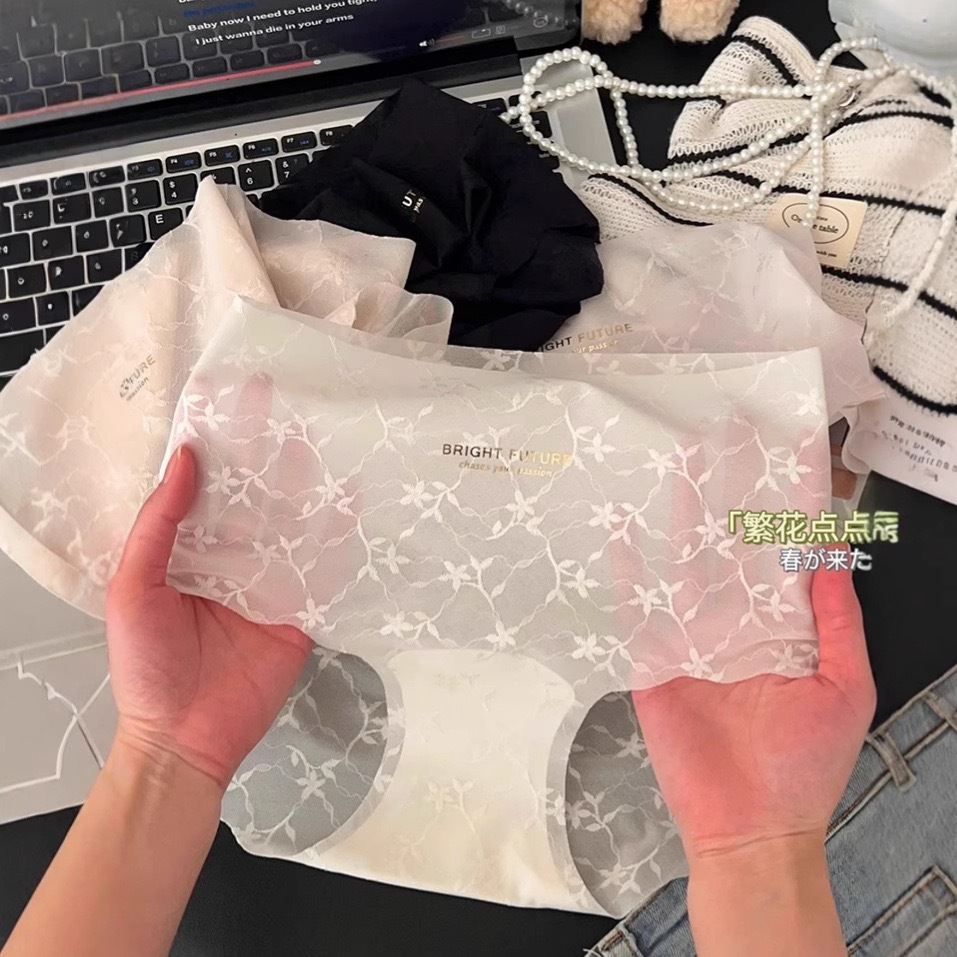 法式冰丝面膜内裤女生10A抑菌纯棉加长裆透气纯欲裸感冰丝三角裤