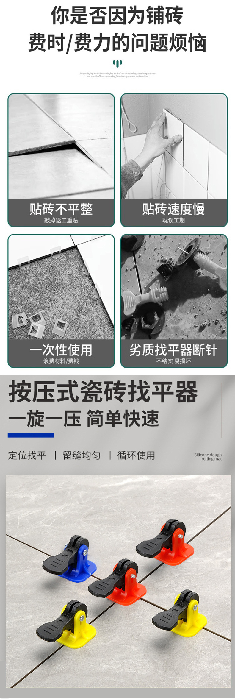 タイルレベラー、タイルレベリングツール、プレス式床タイルツール、壁タイル位置決めおよびレベリングクリップ