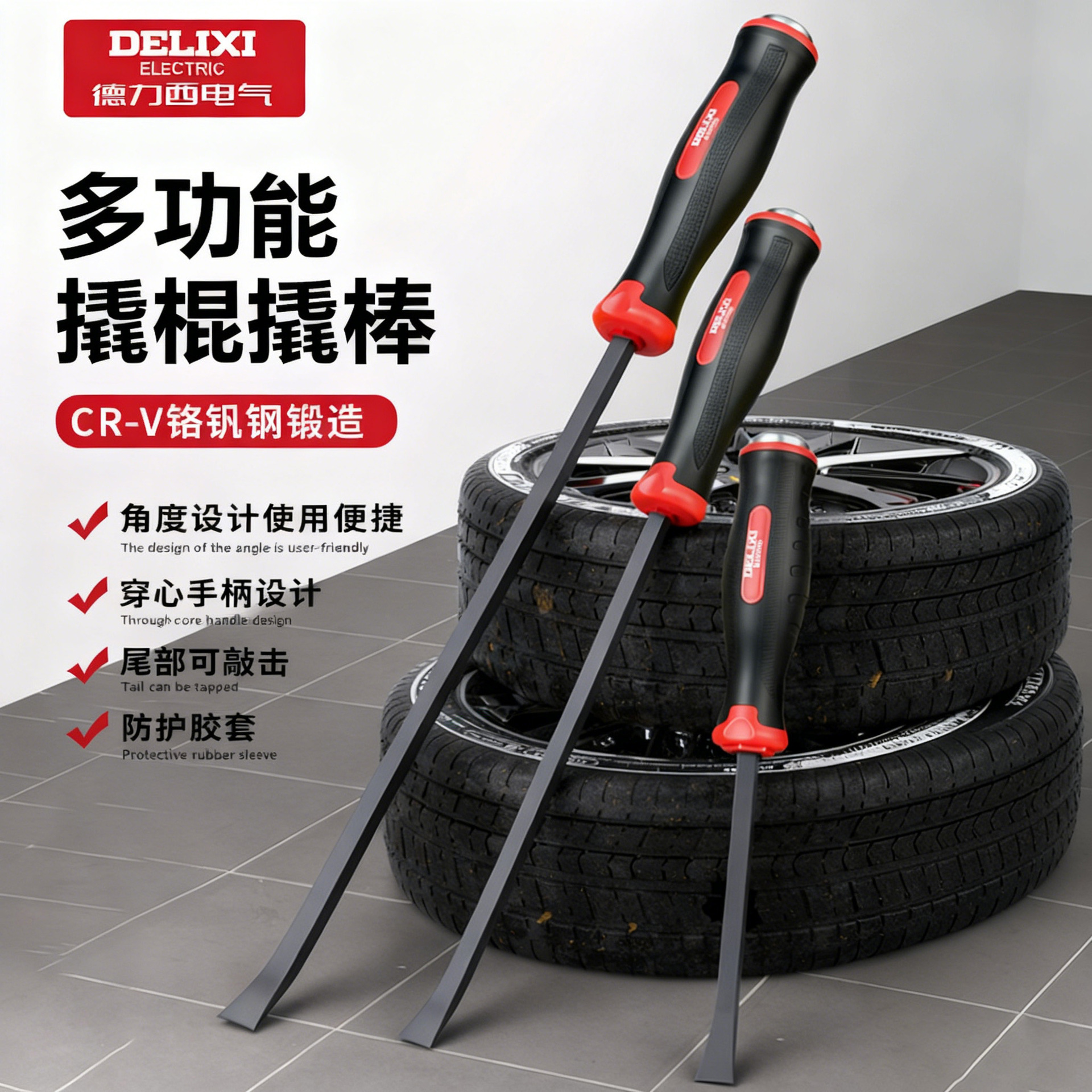 德力西电气撬棍多功能可敲击扁头撬杠车用轮胎扒胎拆装工具撬棒
