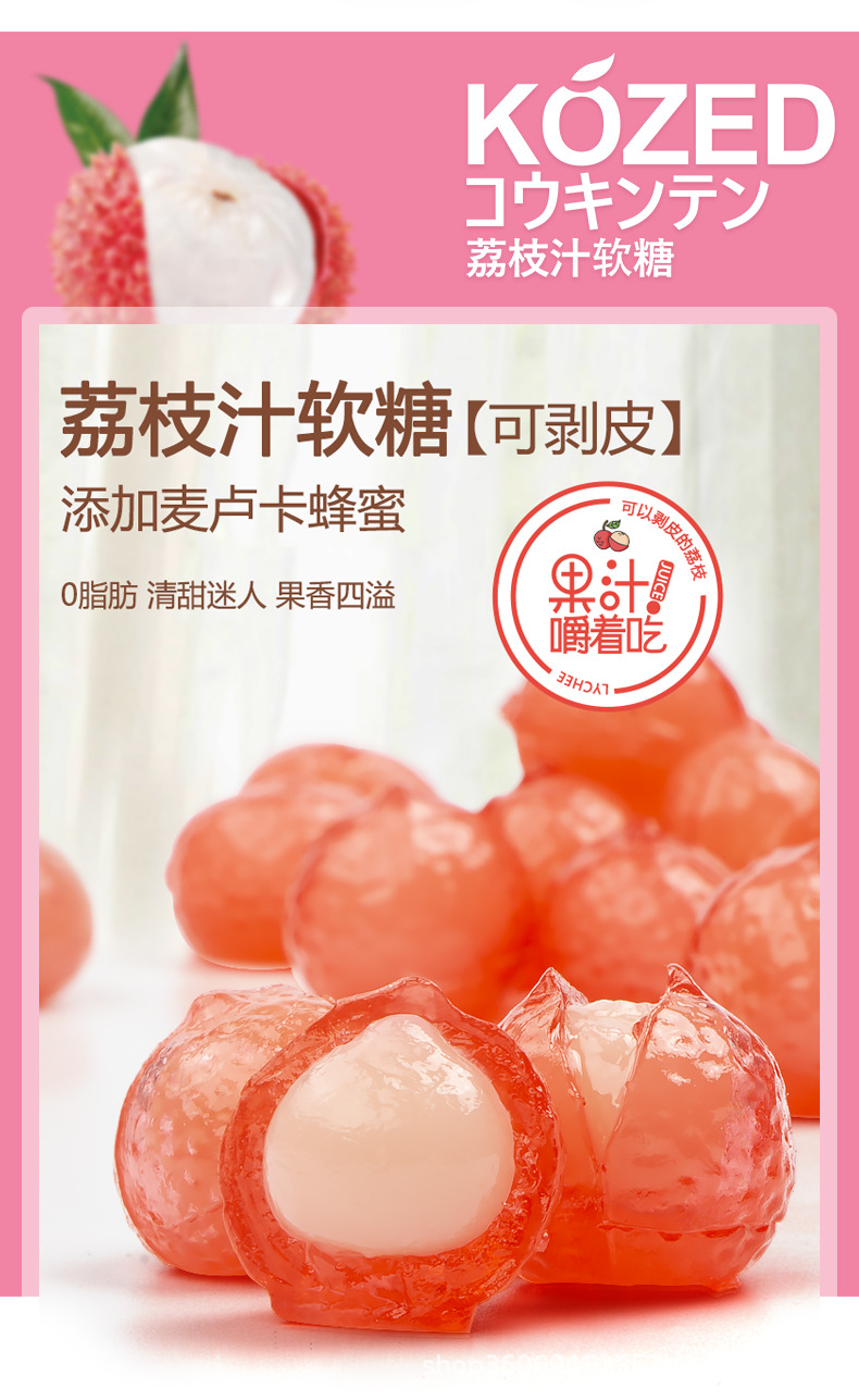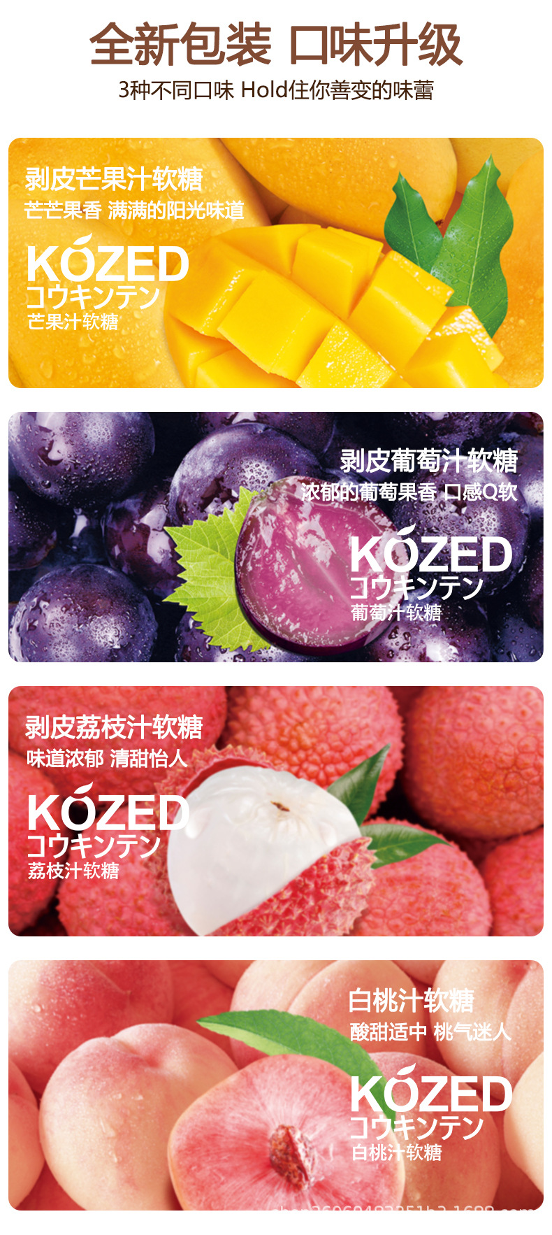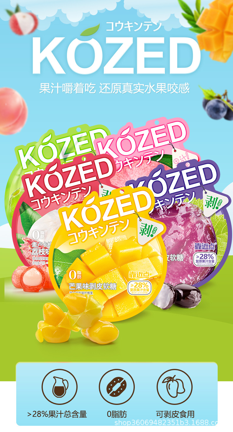 kozed剥皮软糖儿童零食糖果网红芒果荔枝果汁扒皮糖盒装