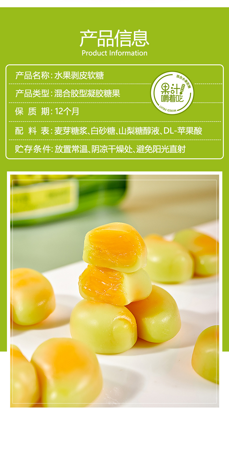 金津皮むきソフトキャンディ0脂マンゴー皮むきジュースQQ爆糊ゴム砂糖多味爆品スナック