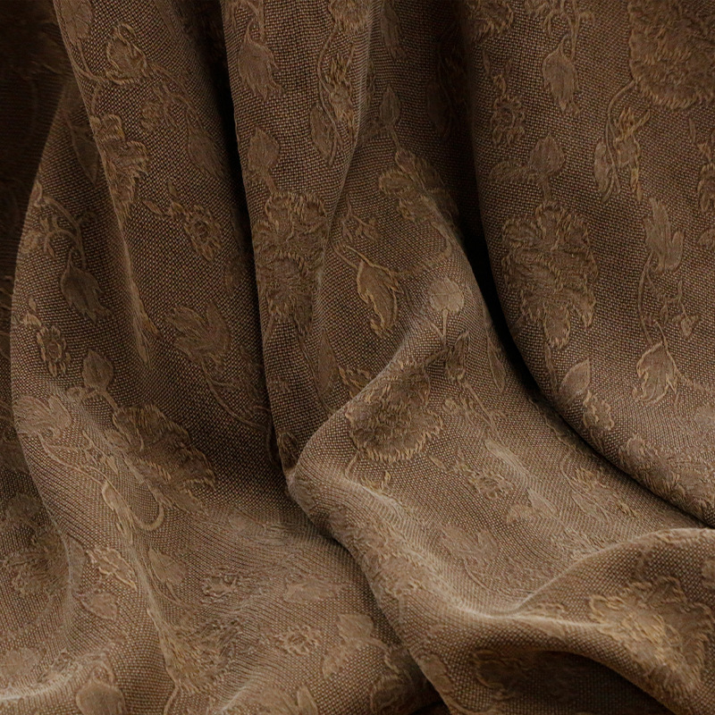 キャラメル色の霊芝花柄、無地平織りシルクジャカードサテン生地、桑蚕糸のレトロサテン生地