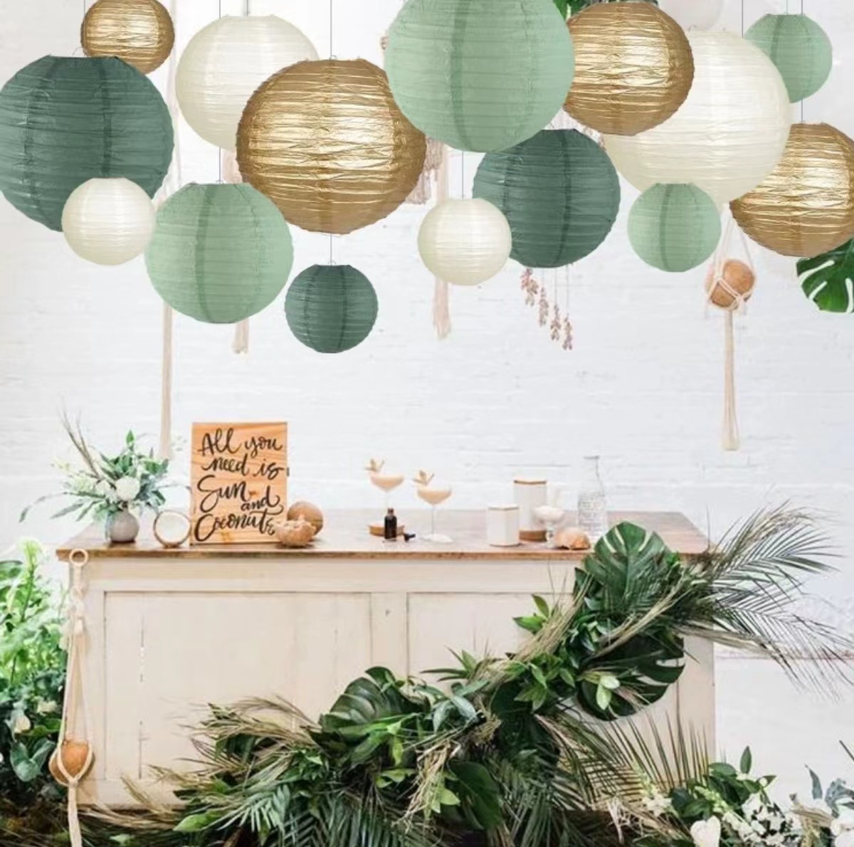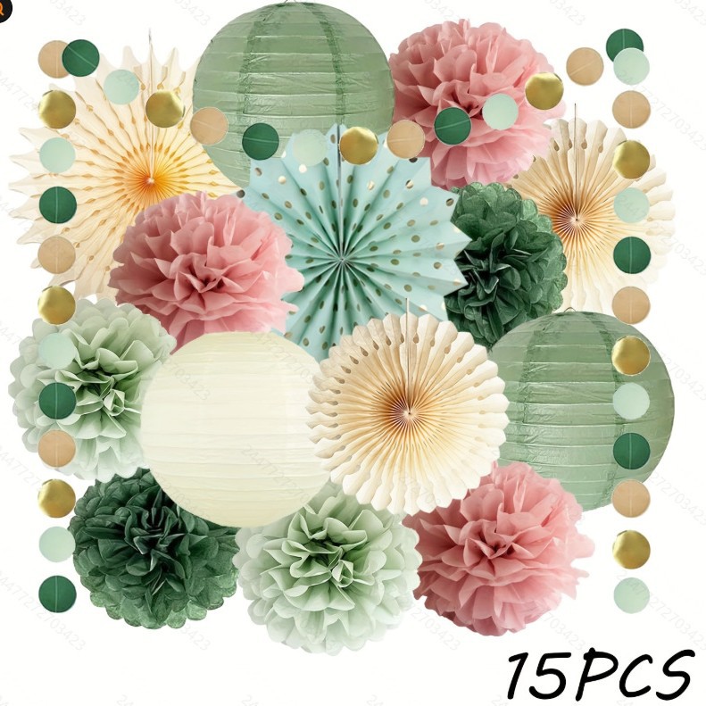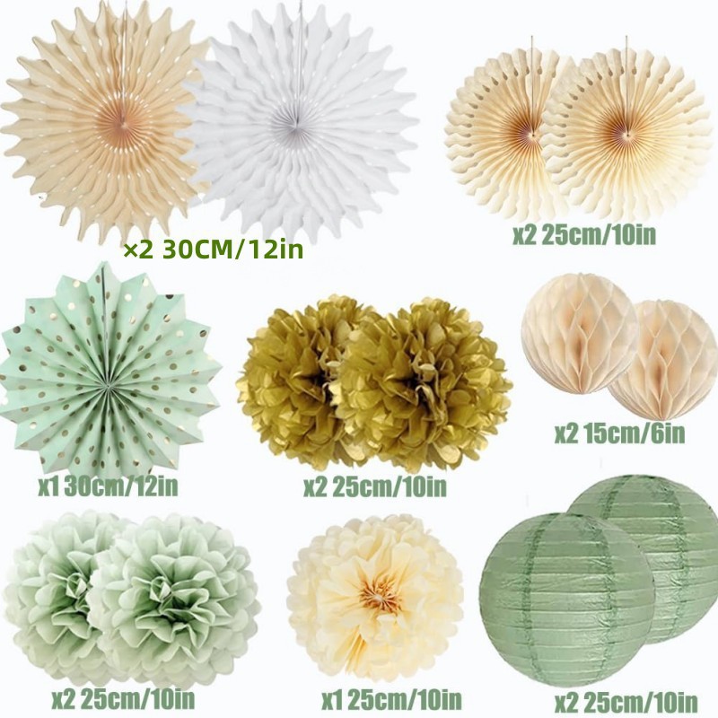 25CM纸花:米黄1个,豆绿2个,金色2个。