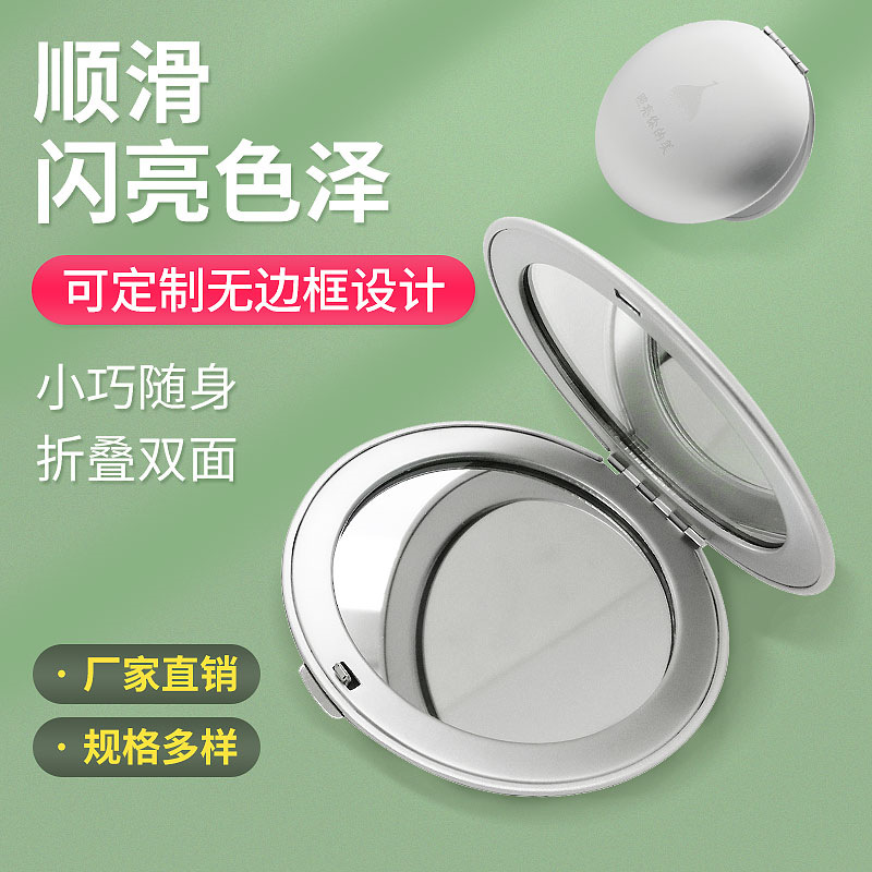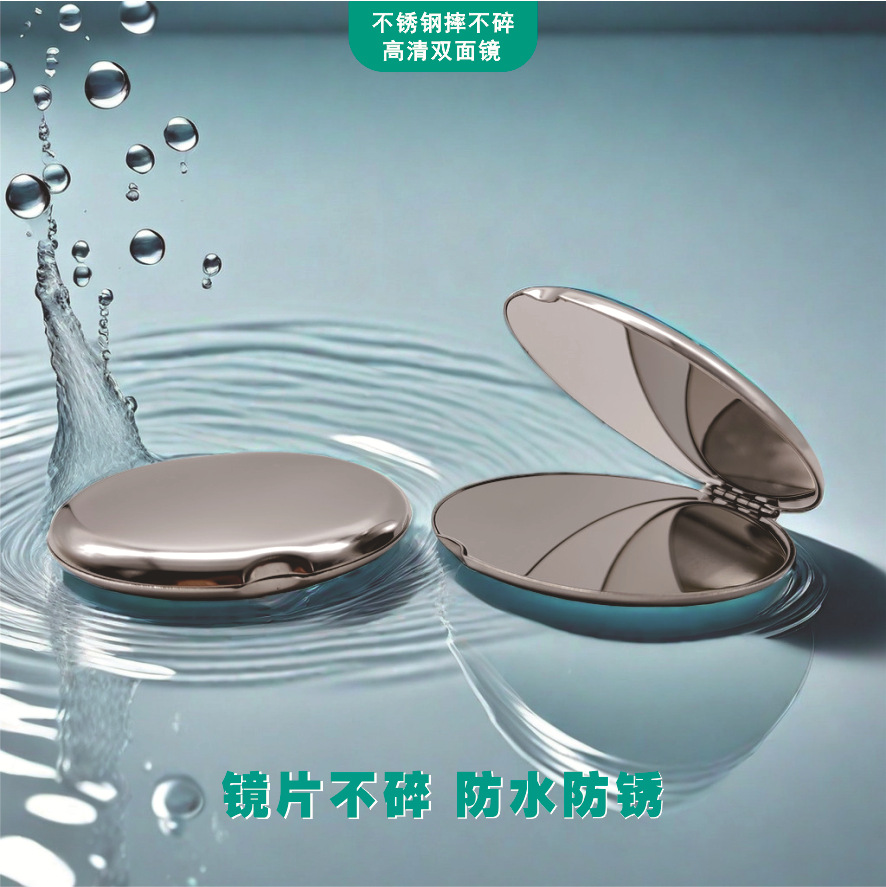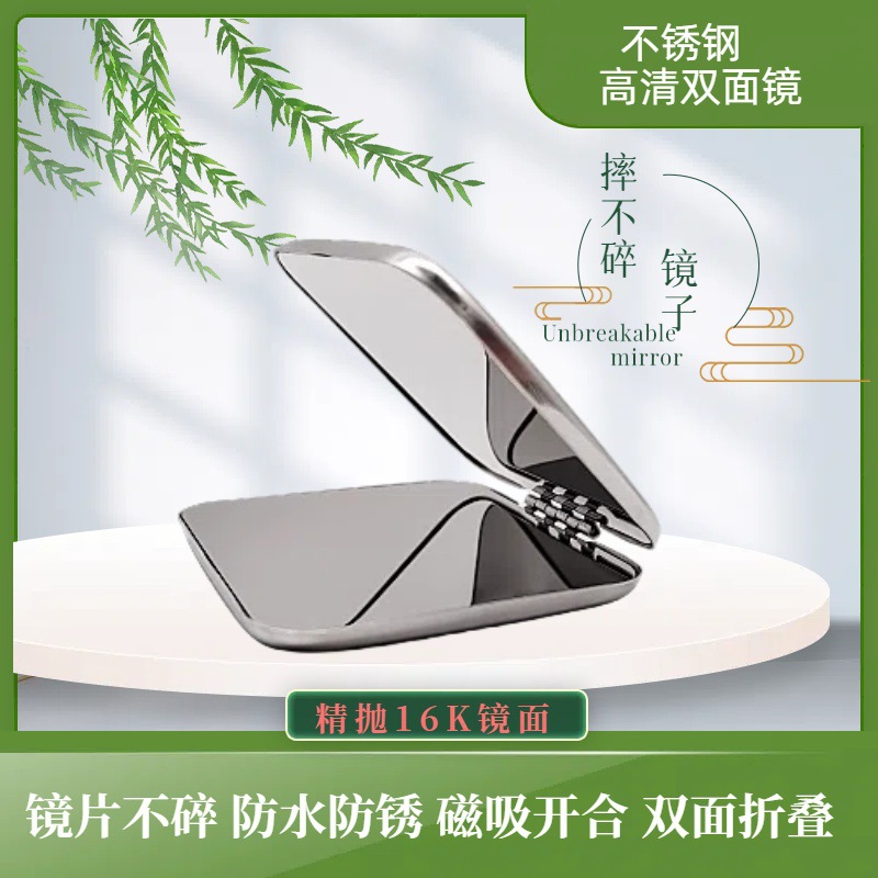 ステンレスは壊れない防水inaシンプルな風携帯型女子ポケット折り畳み両面化粧鏡