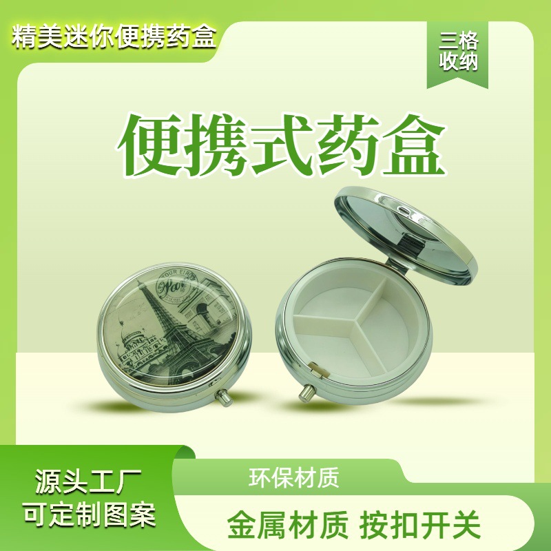 金属製ミニ薬箱 7日間密封 3区画 ポータブル TEMU同型収納 アマゾン限定