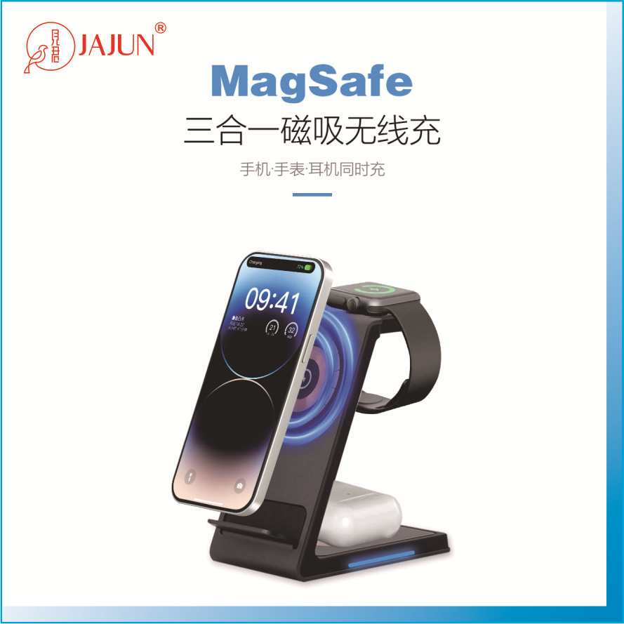 マグネット式ワイヤレス充電器スマート三合一金属縦型デスクトップスタンドはアップルのandroid腕時計携帯電話に適用されます。