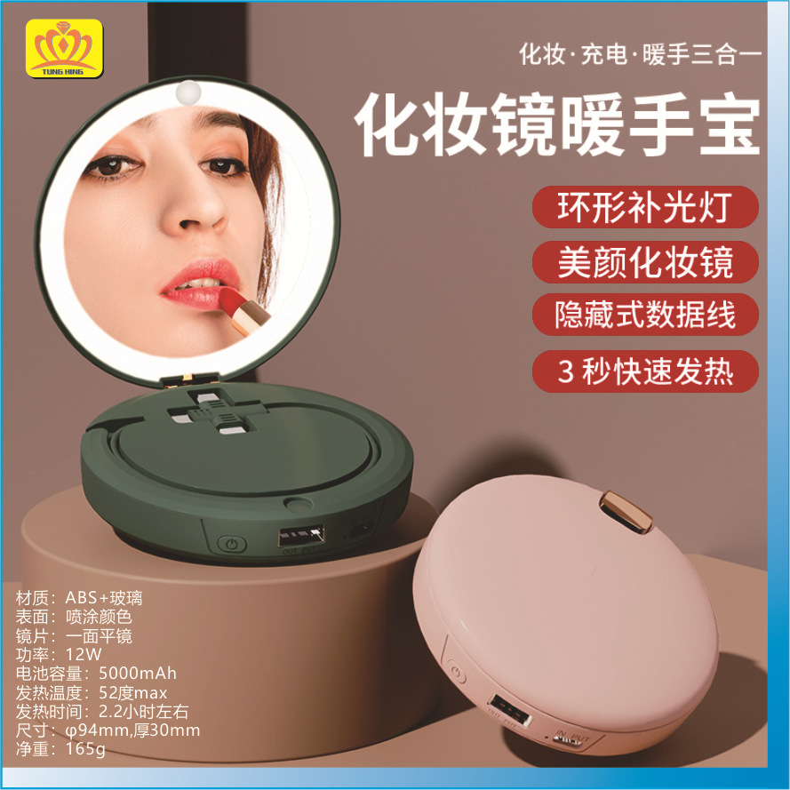 ネット赤三合一led化粧鏡女子学生用かわいい携帯恒温発熱手宝充電宝