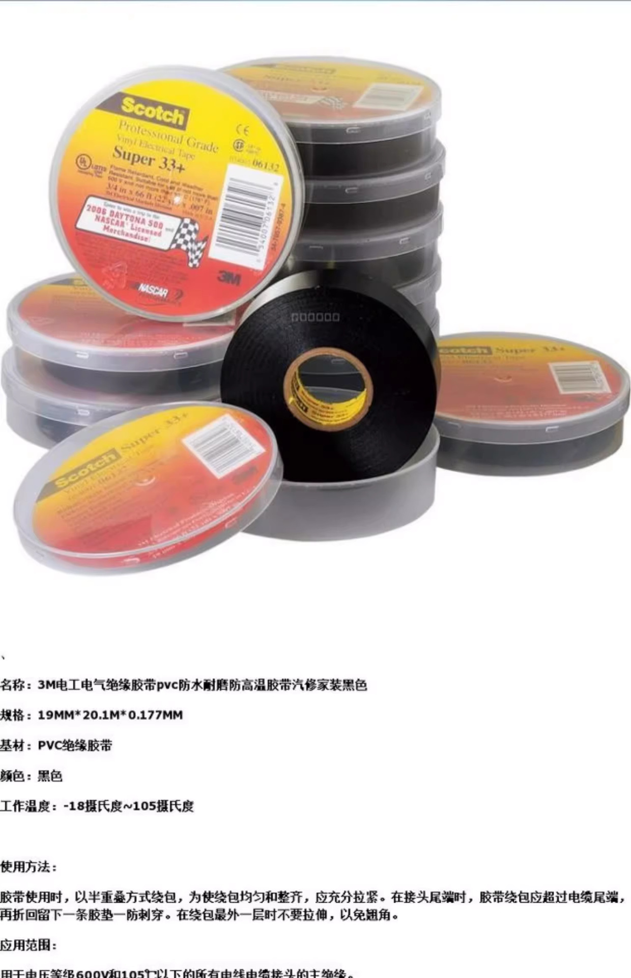 3M 電気絶縁テープ スコッチ Super33+ 特別なタイプの PVC 絶縁テープ 自動車修理 ホームセンター