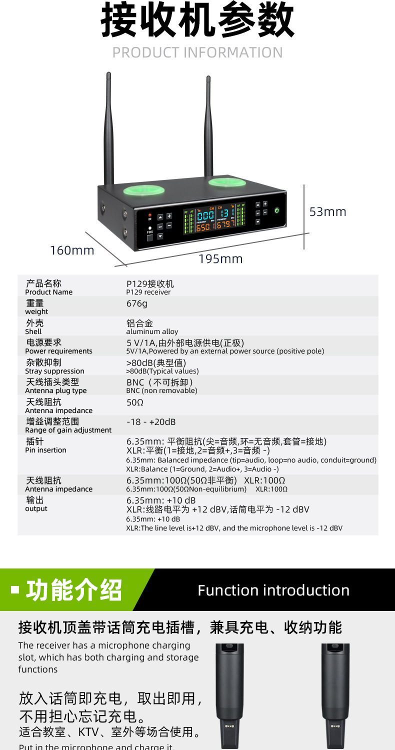 P129 ワイヤレス充電アンチハウリングワイヤレスマイク