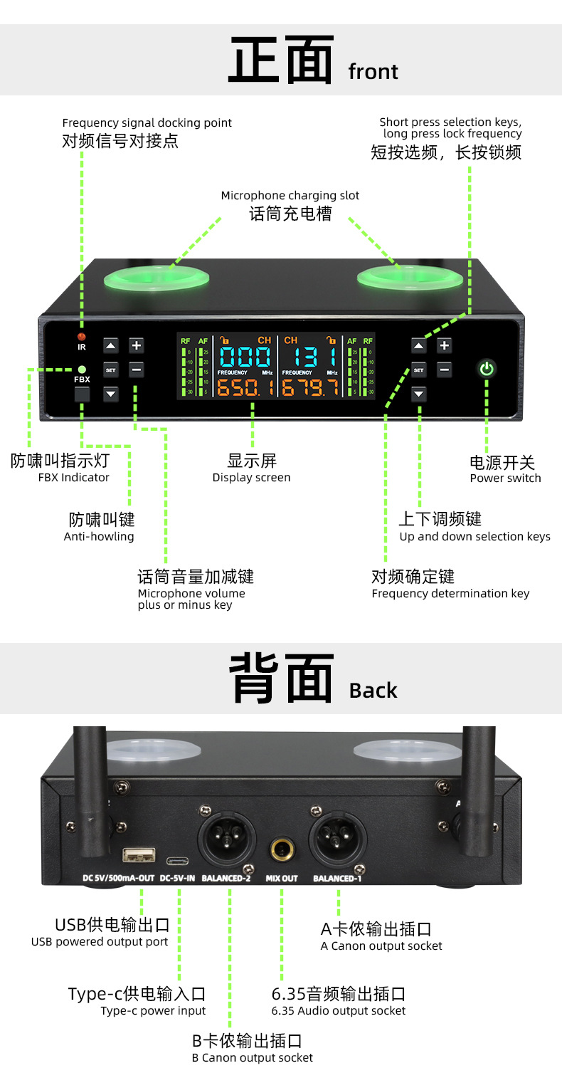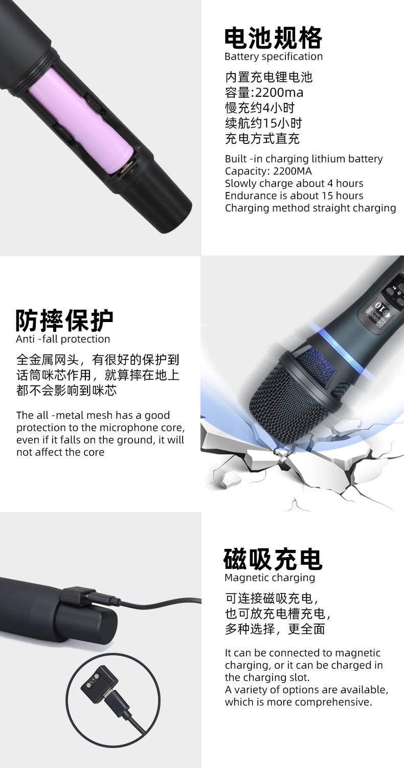 恩平ワイヤレス充電式ハウリング防止ワイヤレスマイク
