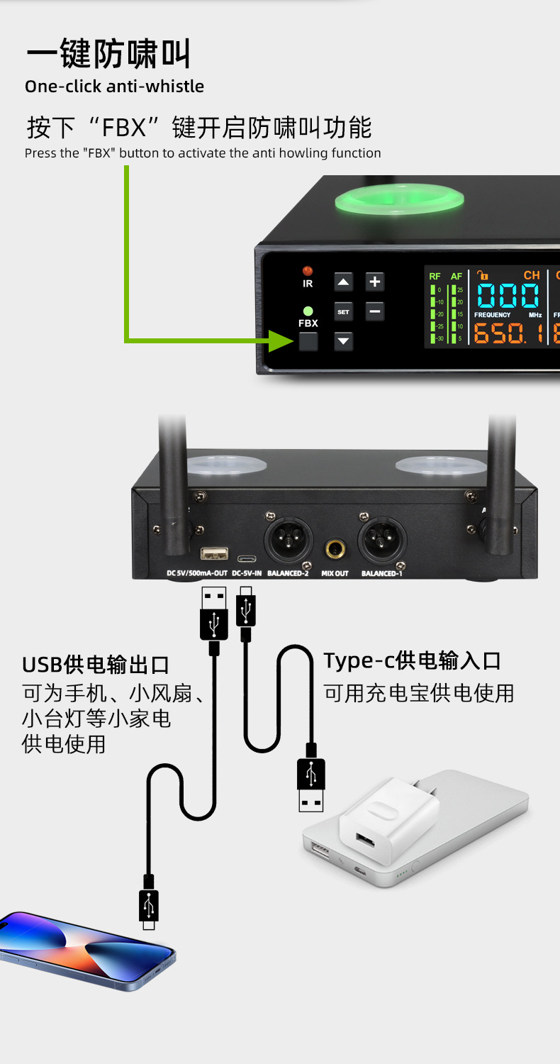 DC5V ワイヤレス充電アンチハウリングワイヤレスマイク