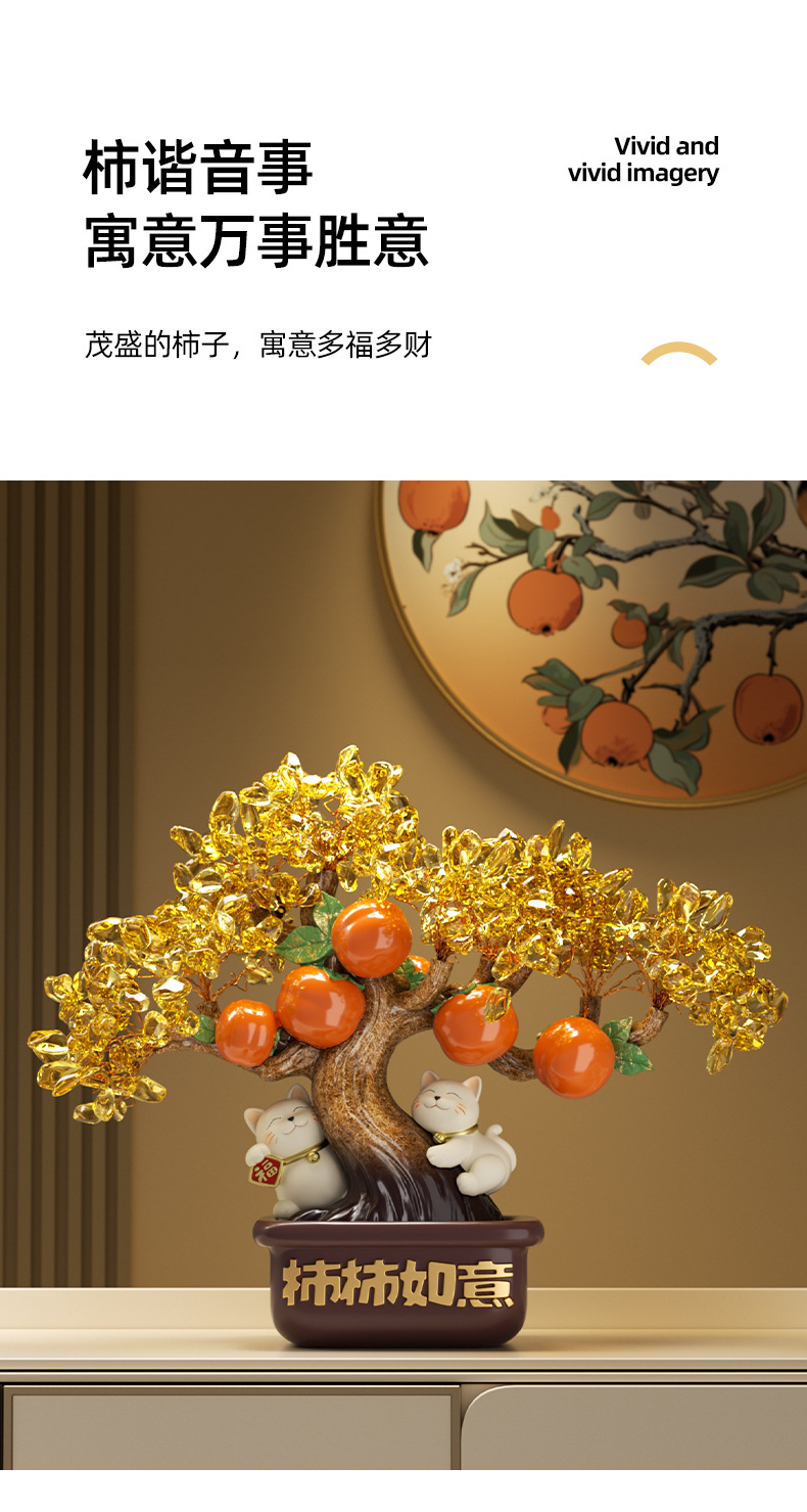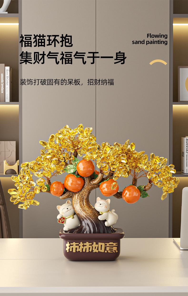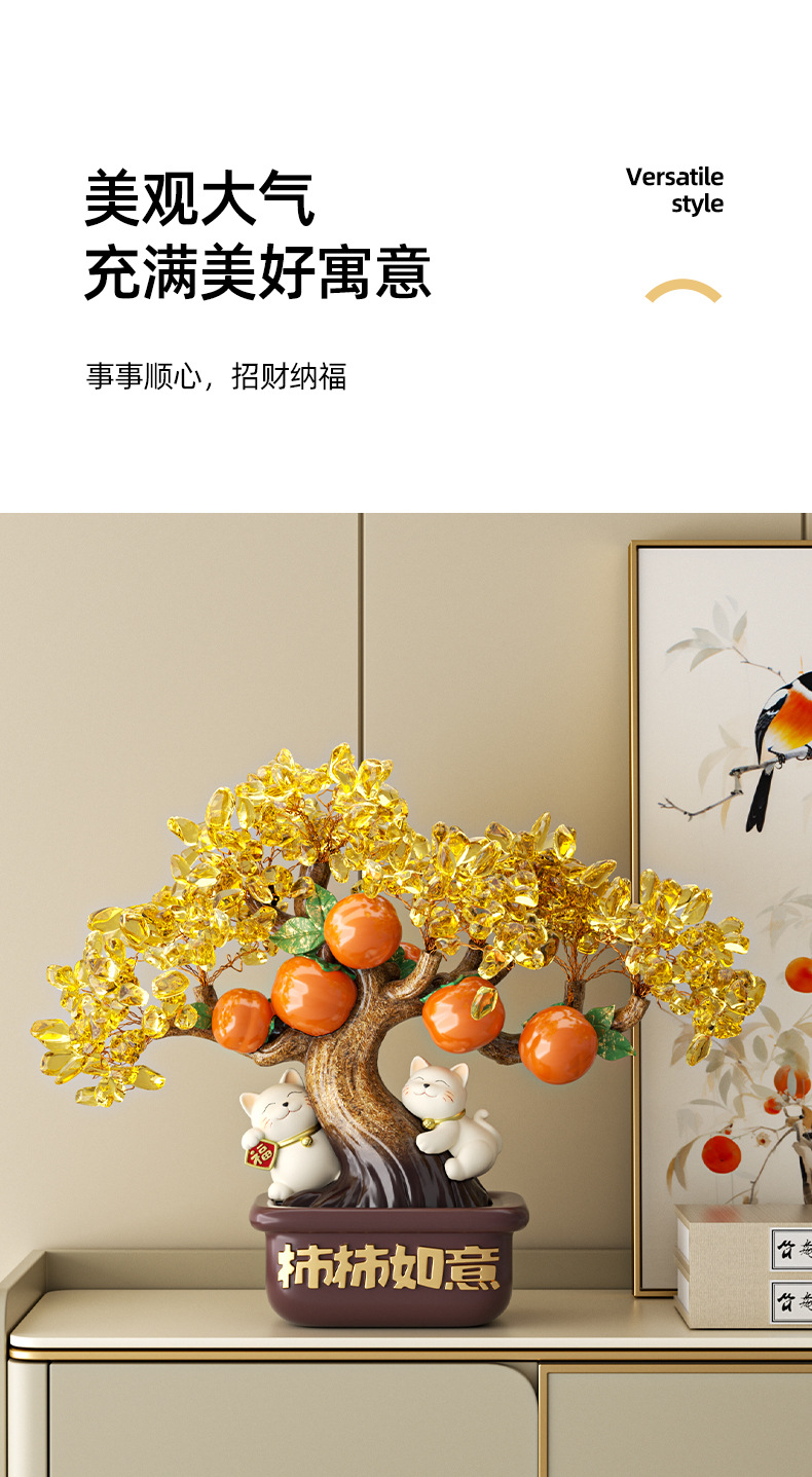 水晶发财树招财猫柿柿如意桌面摆件客厅轻奢高档搬家乔迁新居礼物