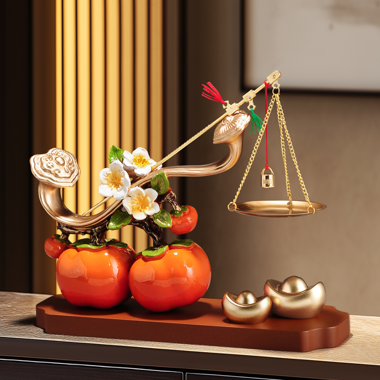 柿柿称心如意柿子摆件客厅玄关电视柜酒柜装饰品搬家乔迁新居礼物