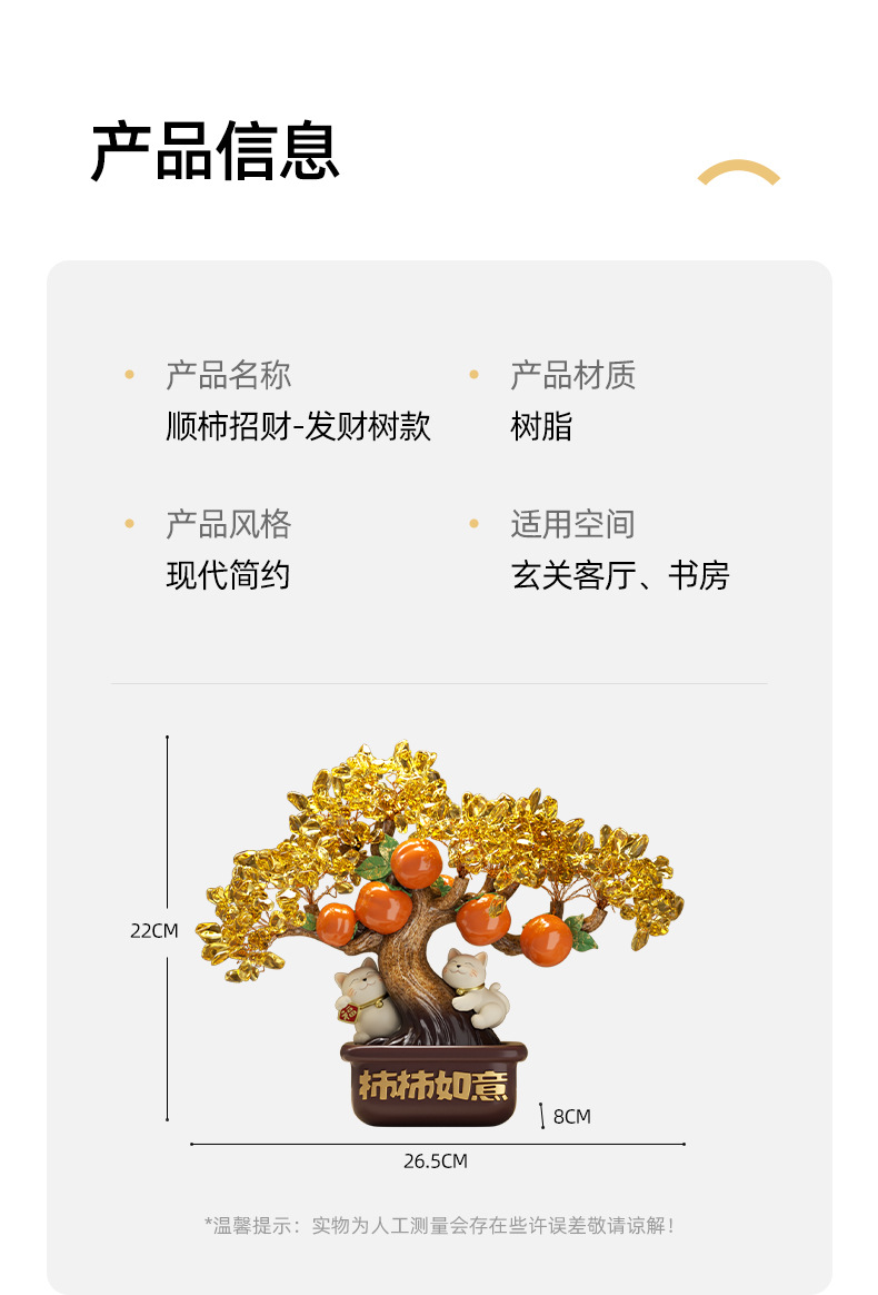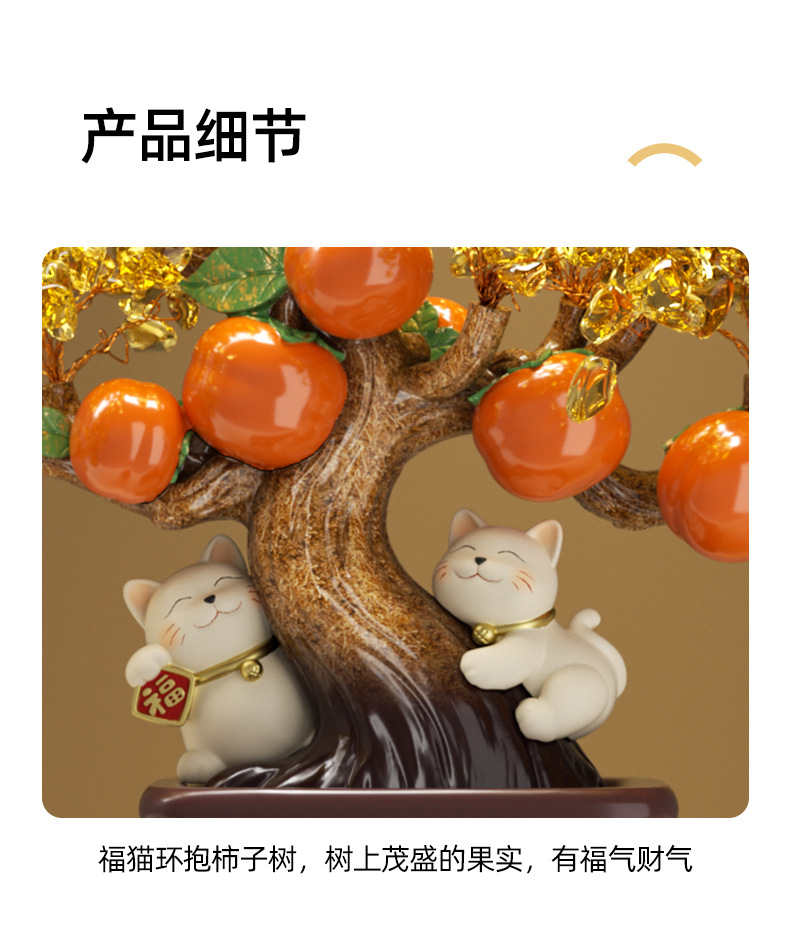 フォーチュンツリー柿柿如意招き猫デスクトップ装飾品リビングルームテレビキャビネット玄関装飾オフィス新築祝いギフト