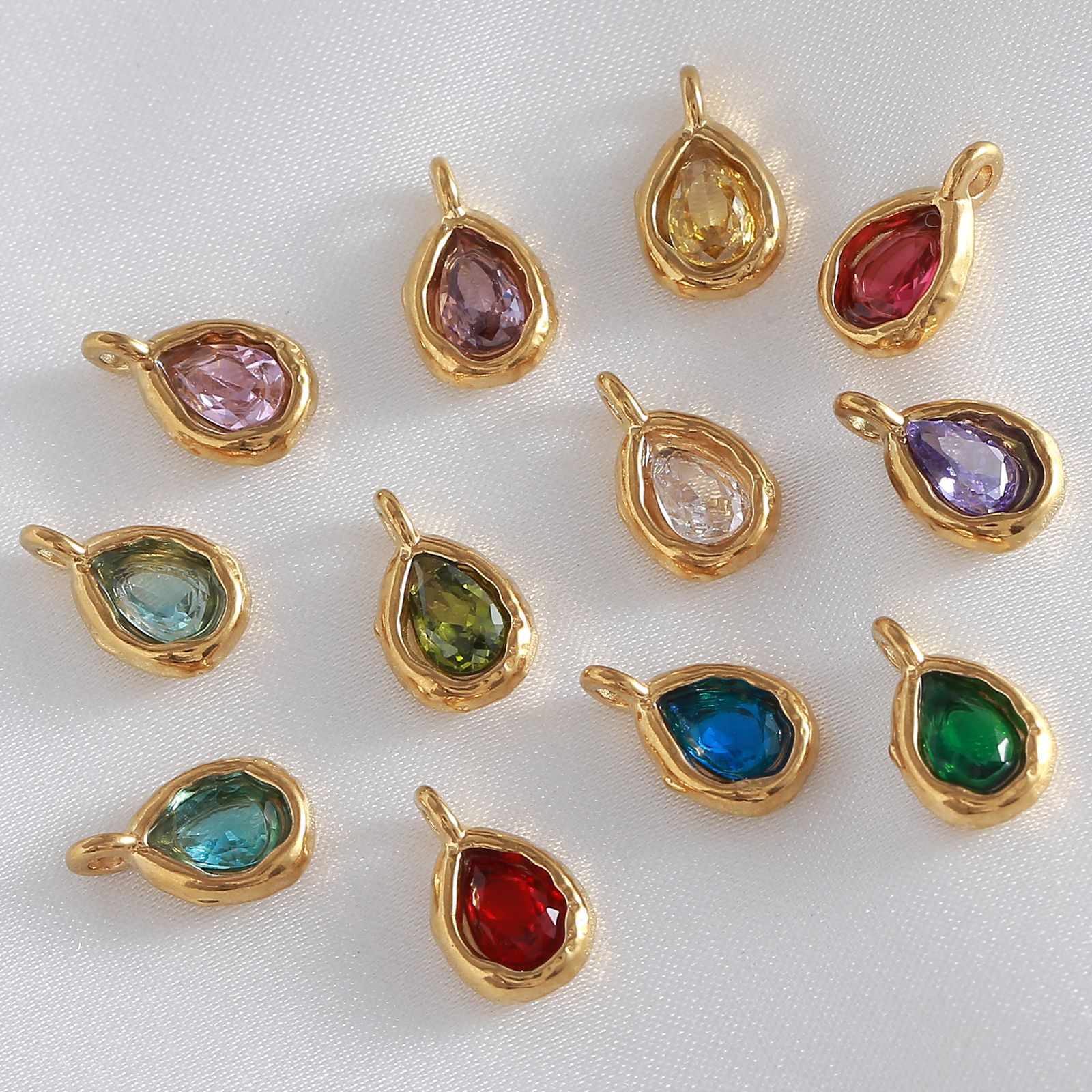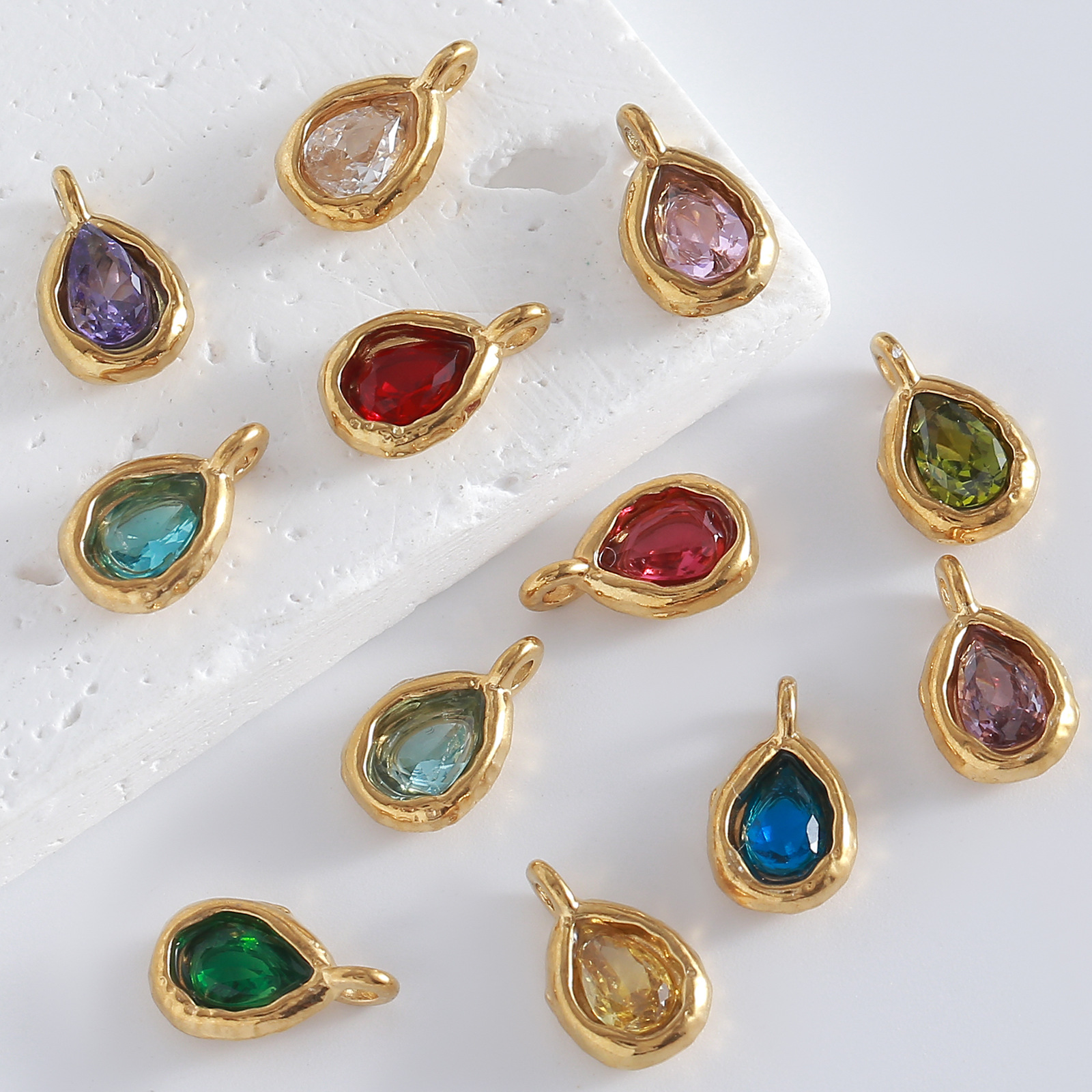 5*7梨形锆石生日石小吊坠 钛钢钻托锆石水滴生辰石耳环手链配件
