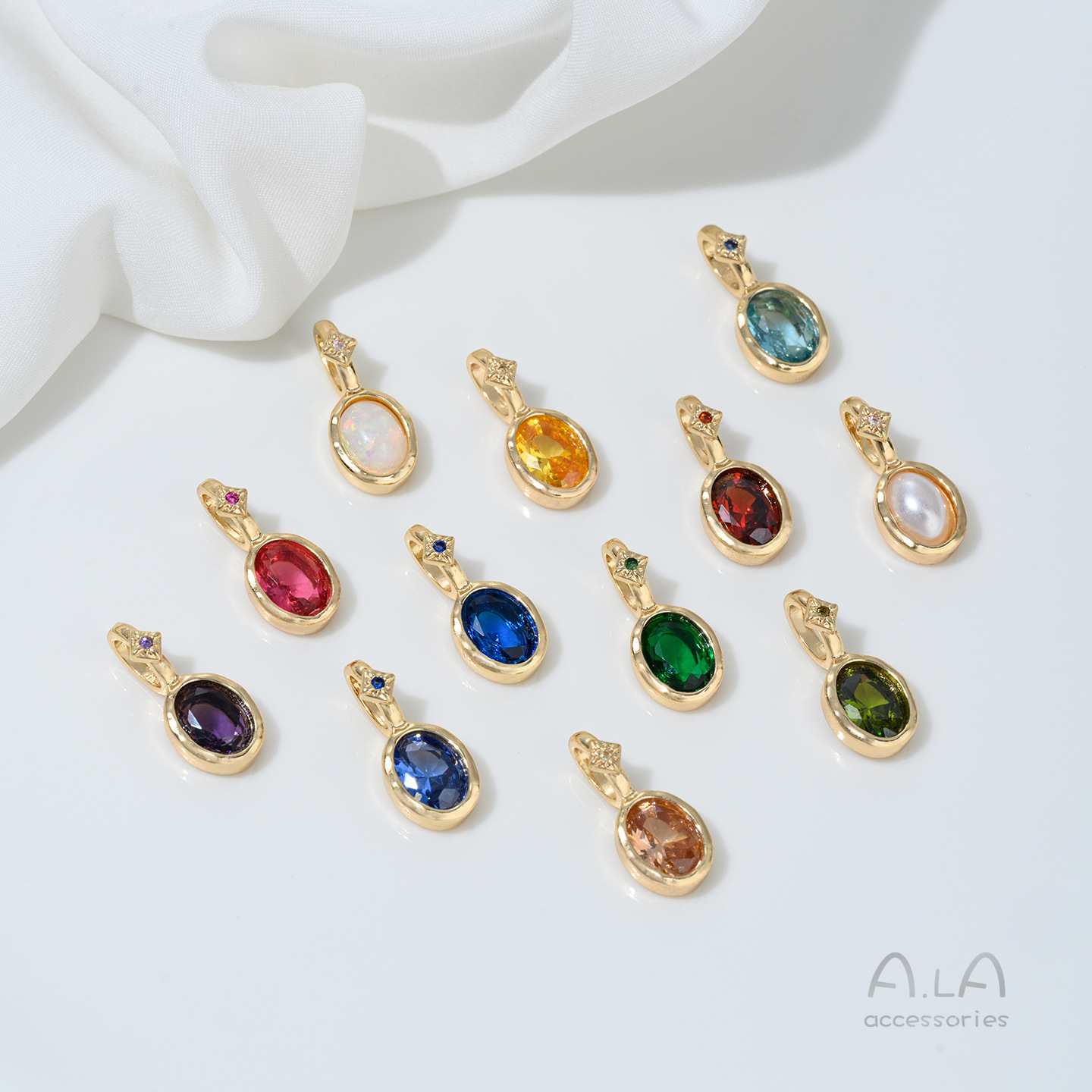 欧美不锈钢彩色12生辰石吊坠diy配件女十二生辰石爱心锆石吊坠