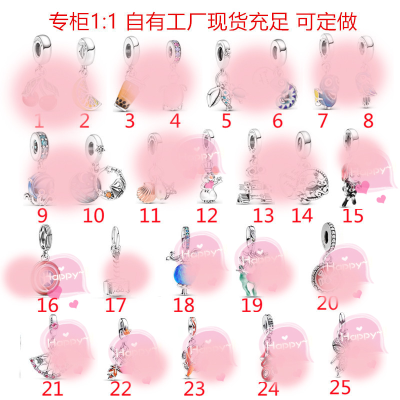 パンドラ白銅銀メッキペンダント漫画シリーズ夏さくらんぼミルクティーペンダントDIY部品