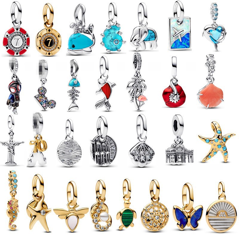潘家多拉白铜镀银吊坠新款吊件海星蝴蝶吊坠串珠DIY配件