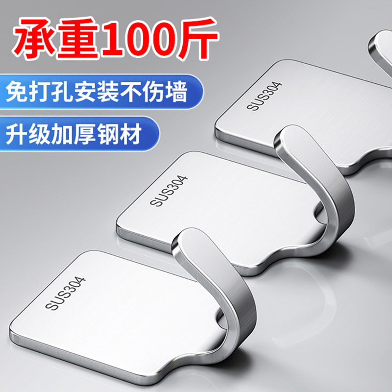 壁に穴を開けずに取り付けられるステンレス製のフック、強力な粘着剤で壁に貼り付ける、超強力な収納フック