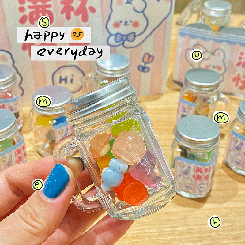 满杯快乐杯子ins透明玻璃瓶(21个/盒)卡通趣味微缩小萌粒杯子