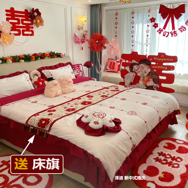 新しい中国風の4ピースウェディングウェディングウェディングドレッシング純綿ベッドシーツキルトカバー高級寝具