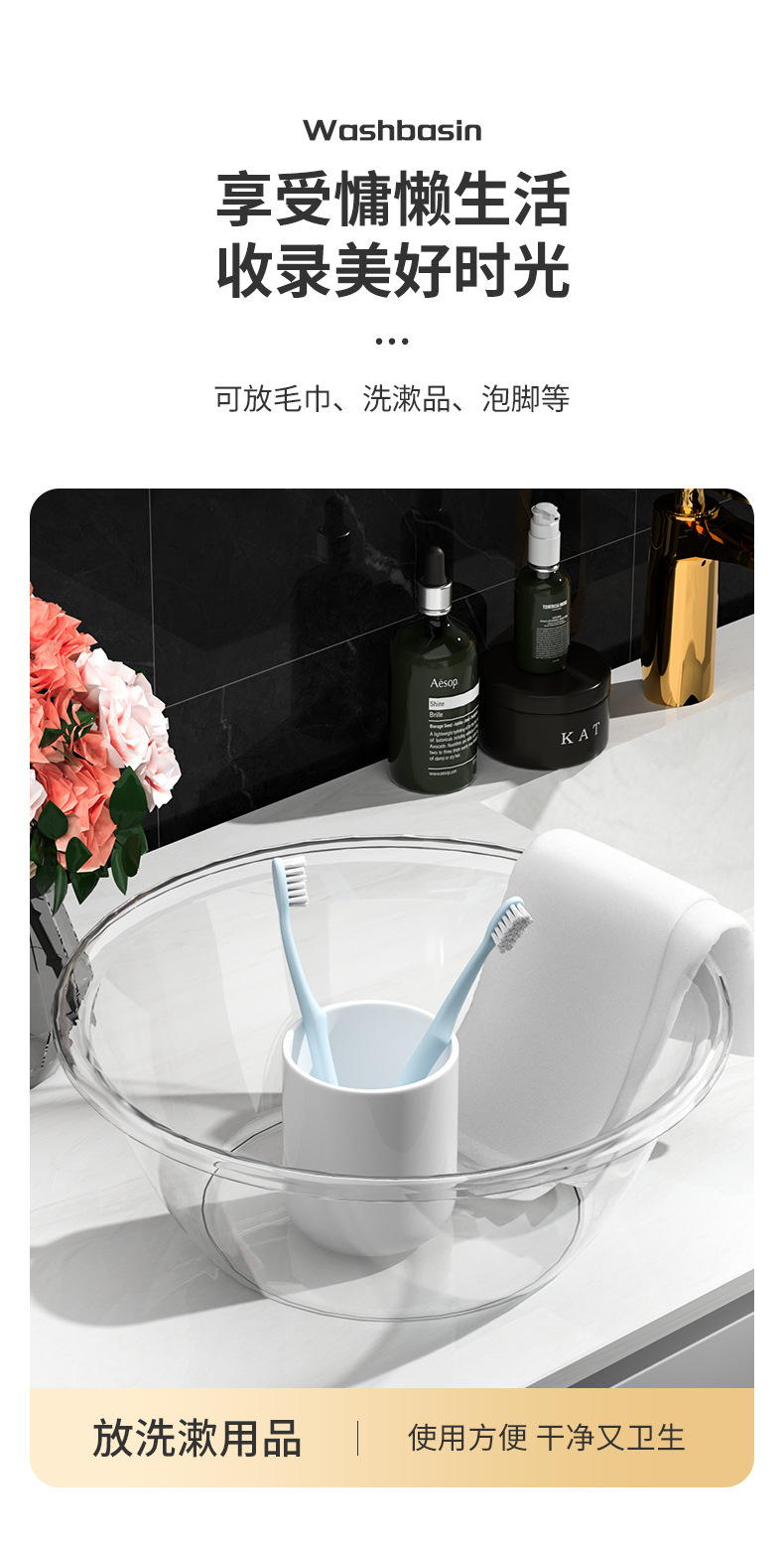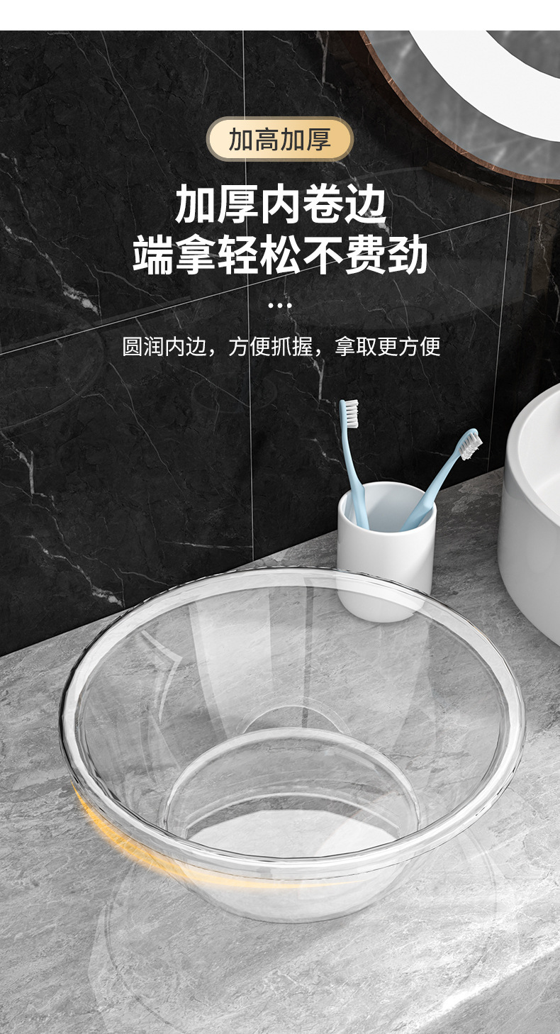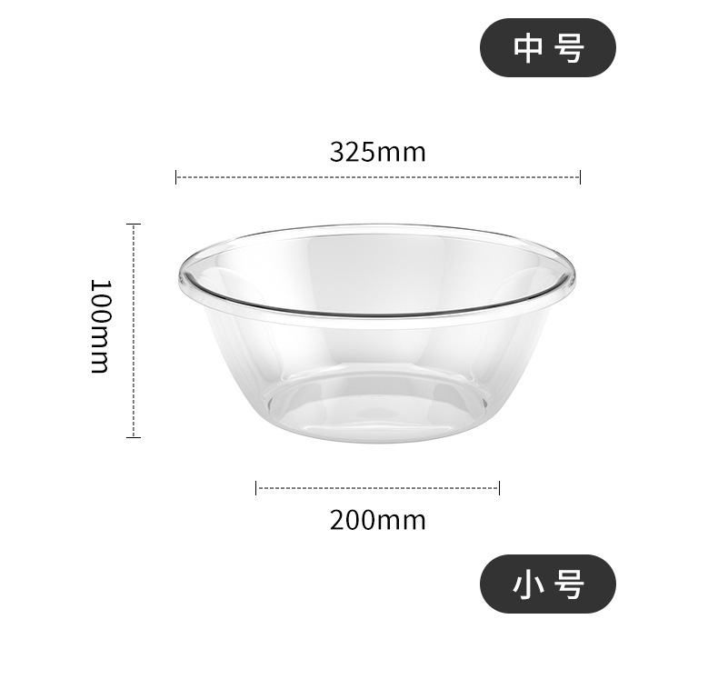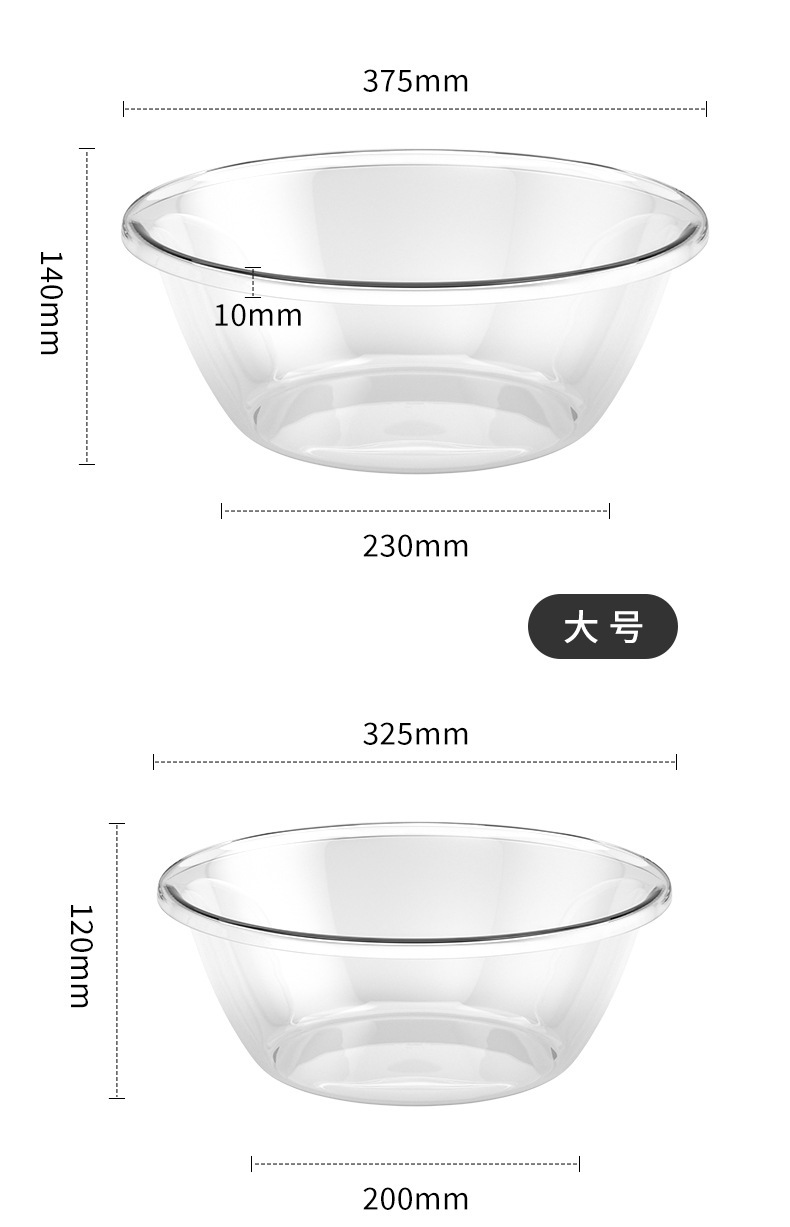 洗面器が厚くて丈夫な家庭用台所の洗面器の学生寮の卸売り洗面器の大きいサイズの透明なプラスチックのたらい
