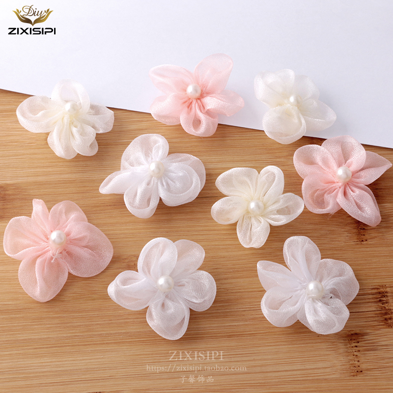 パール手作り DIY フラワージュエリー雪糸 5 花びらフラワーヘアピンブローチ帽子セーター衣類材料アクセサリー